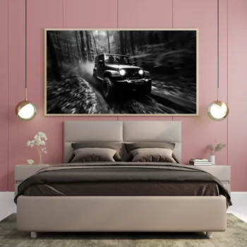 استمتع بجو من الإثارة والمغامرة مع هذه اللوحة الفنية المذهلة التي تلتقط لحظة ديناميكية لسيارة جيب تتحدى الطبيعة. بتفاصيلها الدقيقة وألوانها الأحادية، تضفي هذه القطعة لمسة من الأناقة على أي مساحة، مما يجعلها خيارًا أنيقًا للهدايا التي تعبر عن الذوق الرفيع. متوفرة بمقاسات متعددة وإطارات متنوعة، ستجد بالتأكيد ما يناسب ذوقك واحتياجاتك.