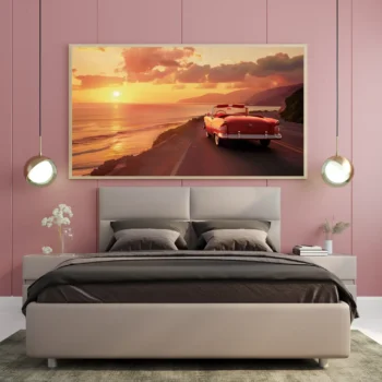 استمتع بجمال لوحة فنية تأسر الأنظار، حيث تتجلى فيها ألوان الغروب الساحرة مع سيارة كلاسيكية حمراء تتألق على جانب الطريق. هذه التحفة الفنية ليست مجرد ديكور، بل تعبير عن الذوق الرفيع، متاحة بمقاسات متعددة وإطارات أنيقة، مما يجعلها خيارًا مثاليًا للهدايا في المناسبات الخاصة. اجعل من كل زاوية في منزلك لوحة تروي قصة من الجمال والتميز.