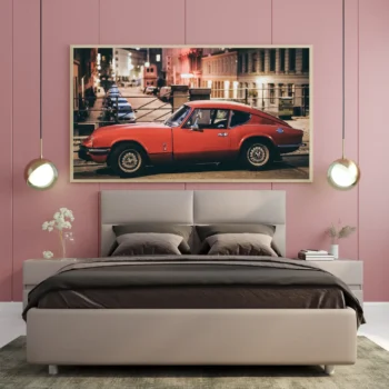 استمتع بجماليات هذه اللوحة الفاخرة التي تلتقط لحظة ساحرة لسيارة حمراء في أجواء حضرية مفعمة بالحياة. تتوفر بأحجام متعددة وإطارات أنيقة، مما يجعلها خيارًا مثاليًا لتزيين منزلك أو مكتبك، أو كهدية تعبّر عن الذوق الرفيع في المناسبات الخاصة. اجعل كل زاوية تنبض بالأناقة والجاذبية مع هذه التحفة الفنية.