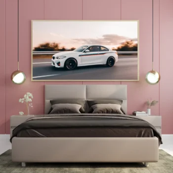 استمتع بجمال الحركة والأناقة مع هذه اللوحة الفاخرة التي تبرز سيارة بي إم دبليو البيضاء وهي تنطلق بسرعة على الطريق، مما يضفي لمسة من الديناميكية على أي مساحة. تتوفر بأحجام متعددة وإطارات أنيقة، مما يجعلها خيارًا مثاليًا للتزيين أو كهدية تعبّر عن الذوق الرفيع في المناسبات الخاصة. اجعل من هذه التحفة الفنية جزءًا من تجربتك البصرية اليومية، واحتفل بالأسلوب والتميز.