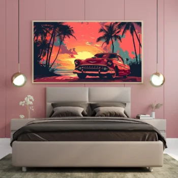 استمتع بجمال لوحة فنية تأسر الأنظار، حيث تتجلى فيها ألوان غروب الشمس الساحرة مع سيارة كلاسيكية حمراء تتألق تحت أشعة الشمس. هذه اللوحة ليست مجرد قطعة فنية، بل هي خيار أنيق للهدايا تعكس الذوق الرفيع، متاحة بمقاسات متعددة وإطارات متنوعة لتناسب كل الأذواق. اجعل من كل مناسبة ذكرى لا تُنسى مع لمسة فنية تضفي سحرًا خاصًا على أي مكان.