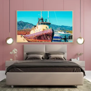 استمتع بجمال هذه اللوحة الفريدة التي تجسد لحظة ساحرة من التاريخ البحري، حيث تلتقي الألوان الدافئة للمياه مع تفاصيل السفن المهجورة. تتوفر بأحجام متعددة وإطارات أنيقة، مما يجعلها خيارًا مثاليًا لإضفاء لمسة من الفخامة على أي مساحة، أو كهدية تعبّر عن الذوق الرفيع في المناسبات الخاصة.
