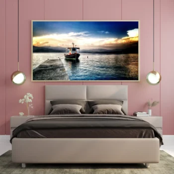 استمتع بجمال هذه اللوحة الفاخرة التي تجسد لحظة ساحرة على الماء، حيث يبحر القارب بأناقة تحت سماء ملونة بألوان الغروب. تتوفر بأحجام متعددة وإطارات أنيقة، مما يجعلها خيارًا مثاليًا لإضفاء لمسة من الرقي على أي مساحة، أو كهدية تعبّر عن الذوق الرفيع في المناسبات الخاصة.