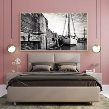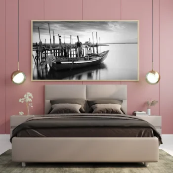 لوحة بحرية بالأبيض والأسود تظهر قاربًا راسيًا بجانب رصيف خشبي مع أجواء هادئة، لوحات جدارية، لوحات كانفاس. ريال 139.00 – ريال 539.00نطاق السعر: من ريال 139.00 خلال ريال 539.00تحديد أحد الخيارات