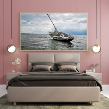 استمتع بجمال هذه اللوحة الفنية التي تلتقط لحظة ساحرة من الحياة البحرية، حيث تتناغم الألوان الداكنة مع تفاصيل الخشب العتيق. تتوفر بأحجام متعددة وإطارات أنيقة، مما يجعلها خيارًا مثاليًا لتزيين منزلك أو مكتبك، أو كهدية تعبّر عن الذوق الرفيع في المناسبات الخاصة. اجعل من كل زاوية في حياتك لوحة فنية تنبض بالحياة.