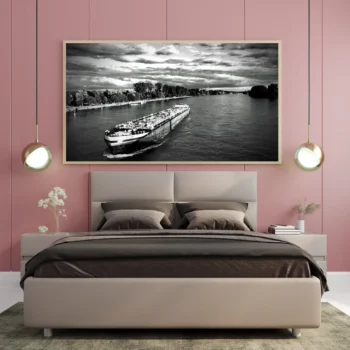 لوحة بحرية باللونين الأبيض والأسود تظهر سفينة تجارية تسير في نهر محاط بالأشجار، أجواء هادئة، لوحات مناظر طبيعية، لوحات كانفاس. ريال 139.00 – ريال 539.00نطاق السعر: من ريال 139.00 خلال ريال 539.00تحديد أحد الخيارات