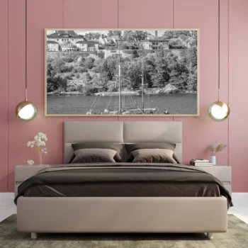 لوحة بحرية بالأبيض والأسود تظهر قوارب في المياه مع منازل محاطة بالأشجار، أجواء هادئة، لوحات طبيعة، لوحات كانفاس أنيقة. ريال 139.00 – ريال 539.00نطاق السعر: من ريال 139.00 خلال ريال 539.00تحديد أحد الخيارات