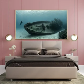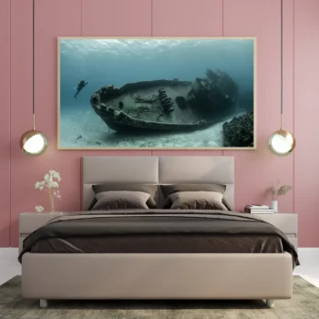 استمتع بجمال الغموض مع هذه اللوحة الفنية التي تبرز سفينة غارقة تحت سطح البحر. تعكس الألوان الهادئة والعمق الساحر مشاعر الحنين والاستكشاف، مما يجعلها إضافة مثالية لأي مساحة تبحث عن لمسة فنية فريدة. اجعل من جدرانك لوحة تحكي قصة البحر.