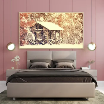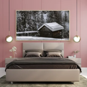 استمتع بجمال الطبيعة الخلابة مع هذه اللوحة الفاخرة التي تجسد سحر الشتاء، حيث يتناغم اللون البني الدافئ للكوخ مع الأبيض النقي للثلوج. تتوفر بأحجام متعددة وإطارات أنيقة، مما يجعلها خيارًا مثاليًا لهدية تعبّر عن الذوق الرفيع في المناسبات الخاصة. اجعل من كل زاوية في منزلك لوحة فنية تنبض بالحياة وتضفي لمسة من الأناقة.