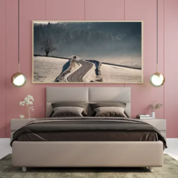 استمتع بجمال الطبيعة الخلابة مع هذه اللوحة الفنية الرائعة التي تجسد لحظة ساحرة في قلب الشتاء، حيث تلتقي الطرق المنعطفة بأشجار الصنوبر المغطاة بالثلوج. تتوفر بأحجام متعددة وإطارات أنيقة، مما يجعلها خيارًا مثاليًا للهدايا التي تعبر عن الذوق الرفيع، لتكون لمسة فنية تضفي سحرًا خاصًا على أي مناسبة.