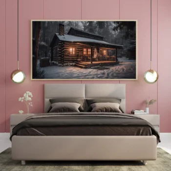 استمتع بجمال هذه اللوحة الفاخرة التي تجسد سحر الشتاء وأجواء الدفء المنزلي، حيث تتلألأ الأضواء في كوخ خشبي محاط بالثلوج. متاحة بمقاسات متعددة وإطارات أنيقة، تُعد خيارًا مثاليًا لهدية تعبّر عن الذوق الرفيع في المناسبات الخاصة، مما يضفي لمسة من الفخامة على أي مساحة.