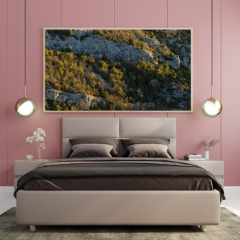 لوحة جبال – صخور خضراء – إضاءة دافئة – هادئ – لوحات طبيعة – لوحات كانفاس