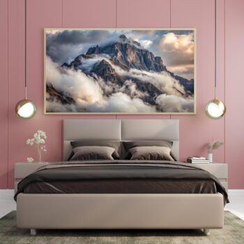 لوحة جبال – قمة جبلية – سحاب أبيض – هادئ – لوحات طبيعة – لوحات كانفاس
