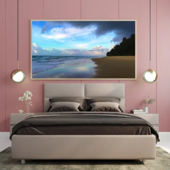 استمتع بجمال الطبيعة الخلابة مع هذه اللوحة التي تجسد سحر الشاطئ تحت سماء زرقاء مفعمة بالغيوم. تعكس الأمواج الهادئة والرمال الذهبية لحظات من الهدوء والسكينة، مما يجعلها إضافة مثالية لأي مساحة تبحث عن لمسة من الأناقة والراحة.