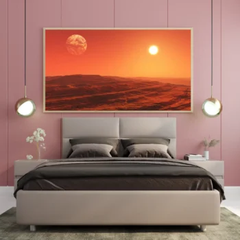 استمتع بجمال الكون مع هذه اللوحة الرائعة التي تأخذك إلى عوالم بعيدة. تميزت بألوان دافئة وأجواء ساحرة، مما يجعلها إضافة مثالية لأي مساحة تبحث عن لمسة من الإلهام والخيال. اجعل كل نظرة إلى جدرانك تجربة فريدة من نوعها.