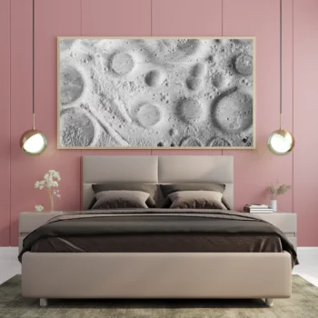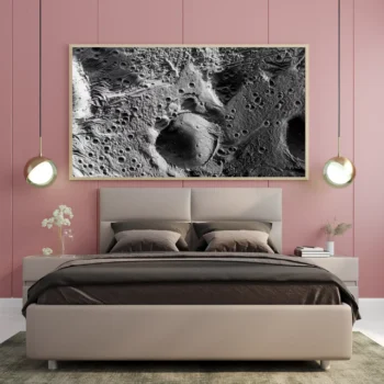 استمتع بجمال الفضاء مع هذه اللوحة الفنية الفريدة التي تأخذك في رحلة عبر تضاريس القمر. بتفاصيلها الدقيقة وألوانها الأحادية، تضفي لمسة من الغموض والرقي على أي مساحة. اجعل من جدران منزلك لوحة تعبر عن شغفك بالكون.
