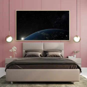 استمتع بجمال الكون مع هذه اللوحة الفنية التي تأسر الأنفاس، حيث تتجلى فيها ألوان الليل الساحرة وتفاصيل الأرض المضيئة. أضف لمسة من السحر والعمق إلى مساحتك، واجعل كل نظرة إليها رحلة إلى عوالم جديدة.