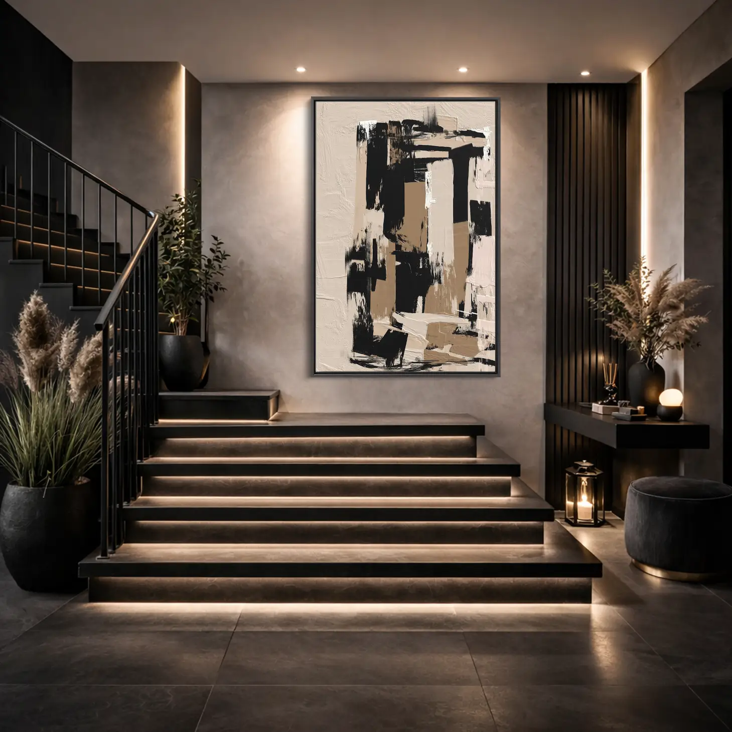 لوحات جدارية تجريدية مودرن كانفس كبيرة فخمة هندسية تعبيرية للمنزل