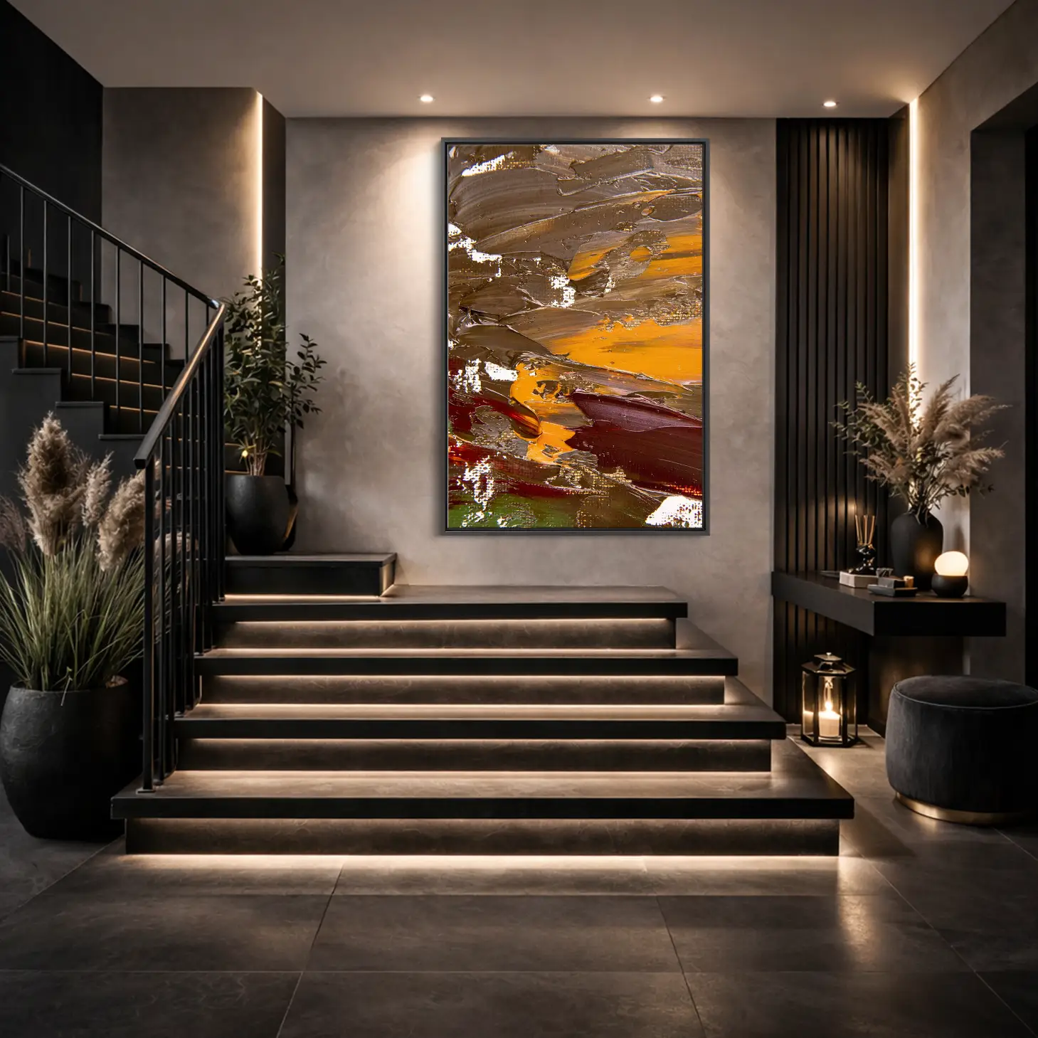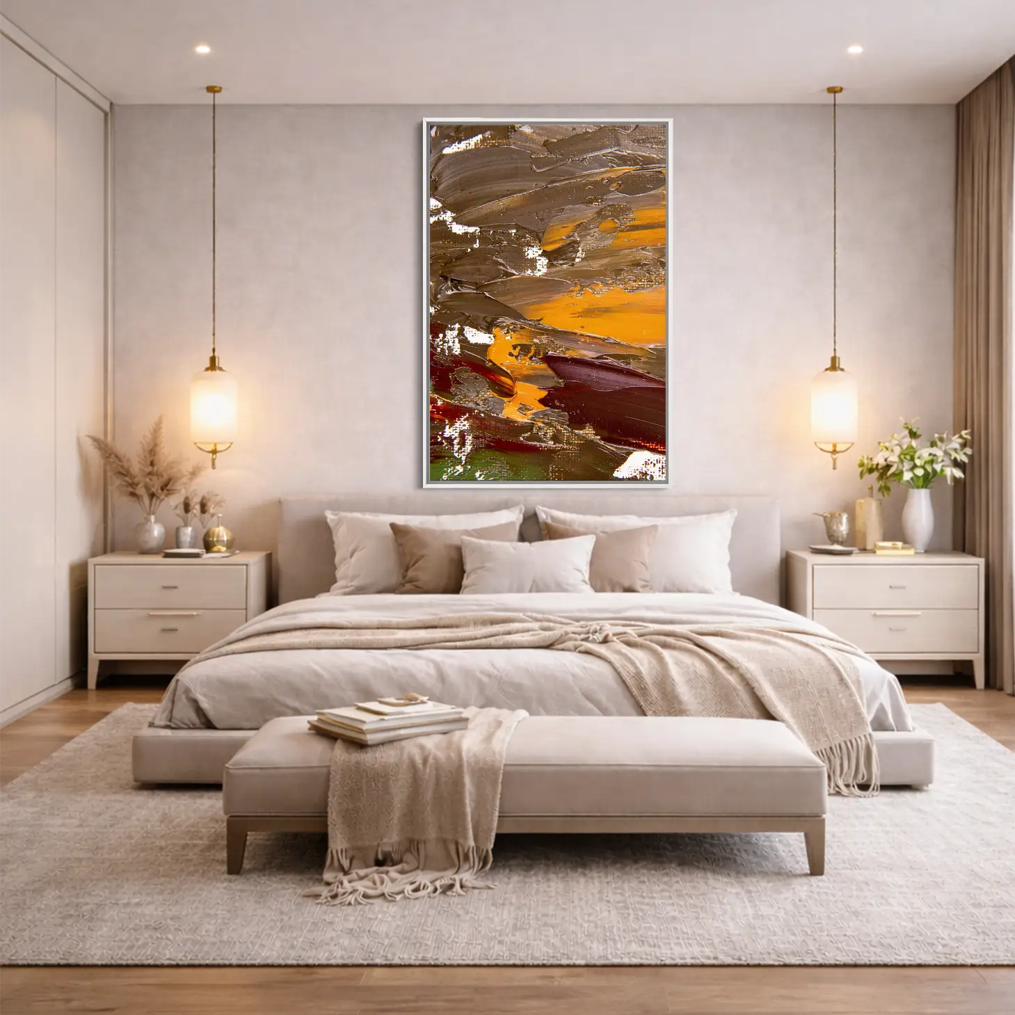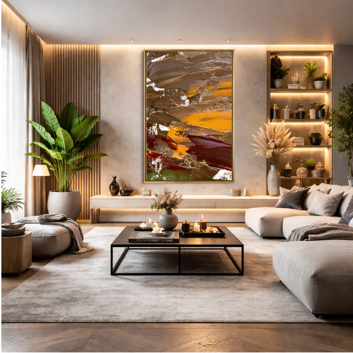 استمتع بجمال هذه اللوحة الفريدة التي تجمع بين الألوان الدافئة والتصميم العصري، مما يضفي لمسة من الأناقة على أي مساحة. تتوفر بمقاسات متعددة وإطارات متنوعة، مما يجعلها خيارًا مثاليًا لتزيين منزلك أو مكتبك. إنها هدية تعبّر عن الذوق الرفيع، مناسبة للمناسبات الخاصة، وتُقدّم بثقة لمن تحب.