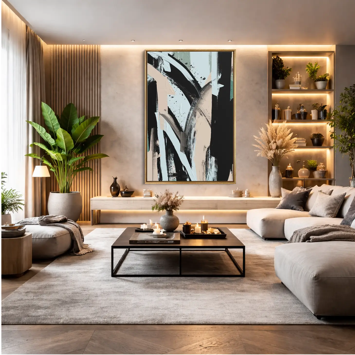 أضف روح الفن والتميّز إلى منزلك مع هذه المجموعة الرائعة من اللوحات الجدارية التجريدية المصممة بعناية لتناسب الذوق العصري والديكور الحديث.