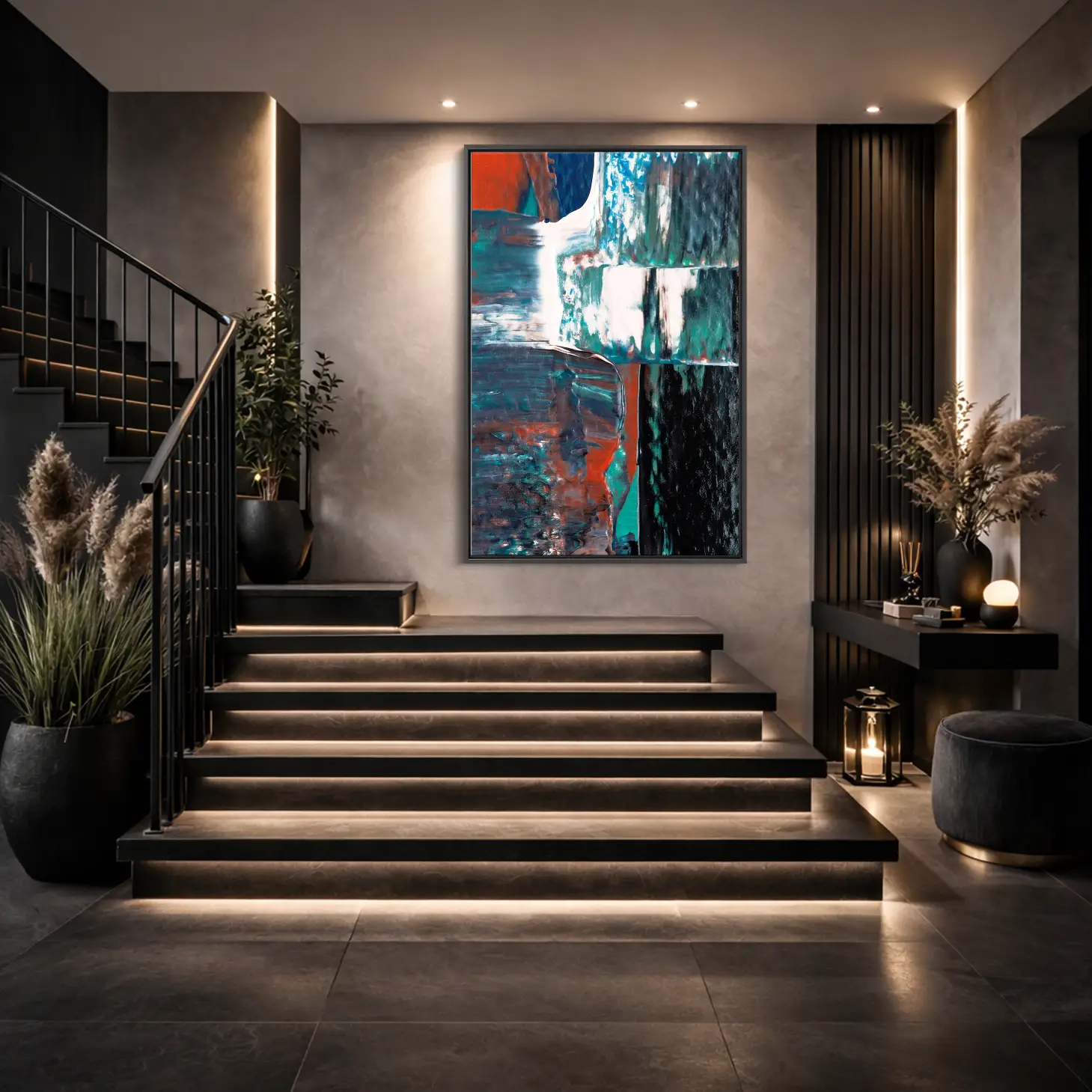 لوحات جدارية تجريدية مودرن كانفس كبيرة فخمة هندسية تعبيرية للمنزل