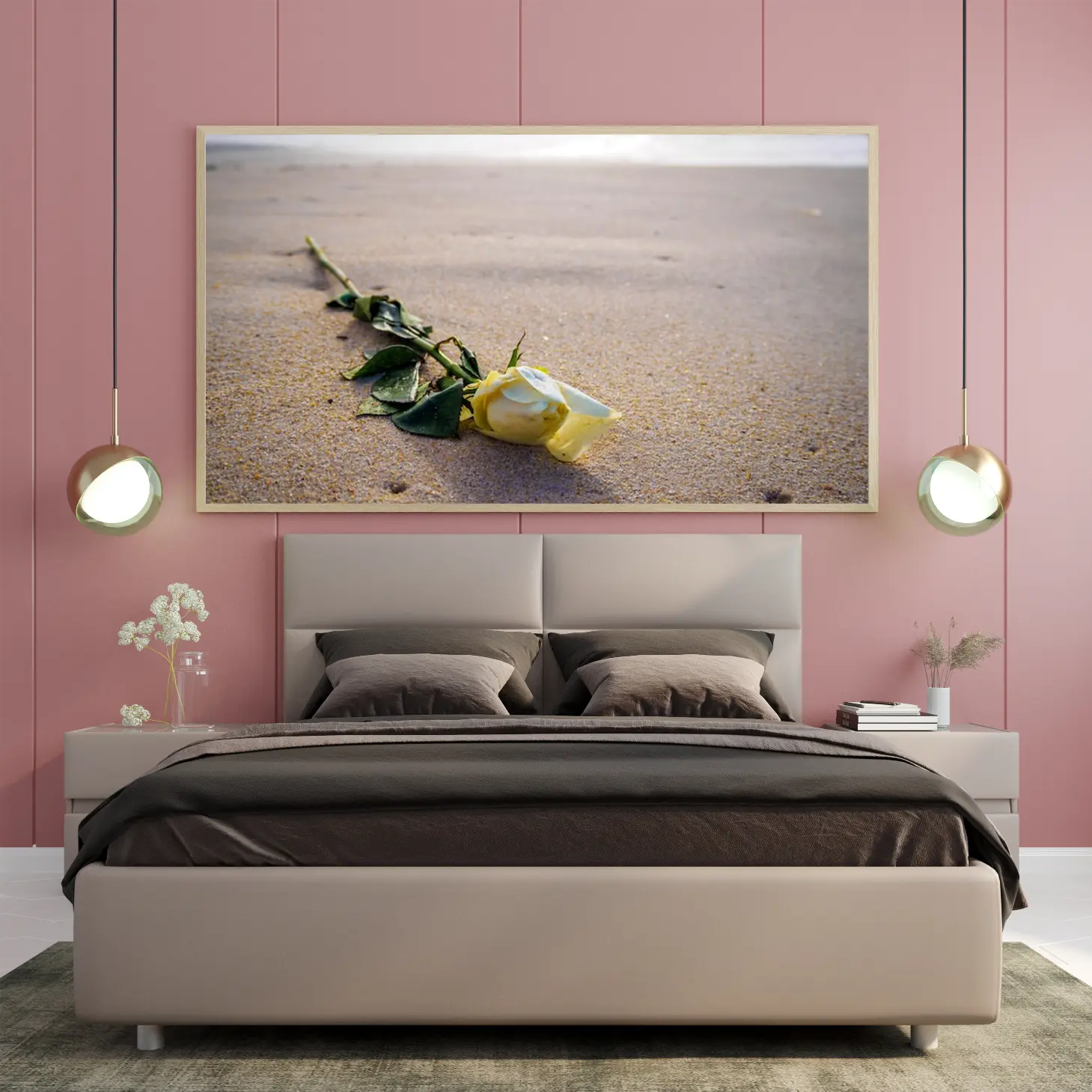 تتميز هذه القطعة الفنية بقدرتها على إلهام الخيال، حيث يمكن للناظر أن يتخيل قصصًا وحكايات حول الزهرة، مما يضيف عمقًا إلى التجربة البصرية. إن التفاصيل الدقيقة في أوراق الزهرة والظل الذي تلقيه على الرمال يساهمان في إضفاء طابع فني مميز، مما يجعلها خيارًا مثاليًا لعشاق الفن العصري.