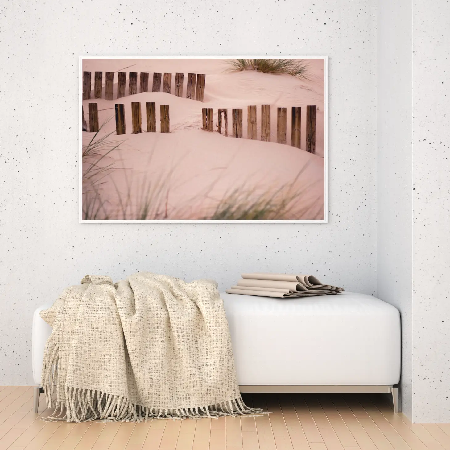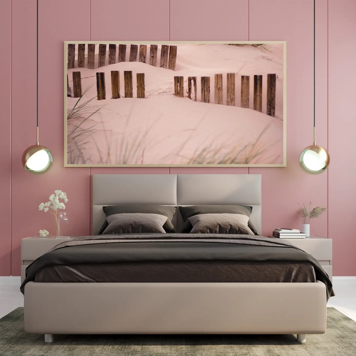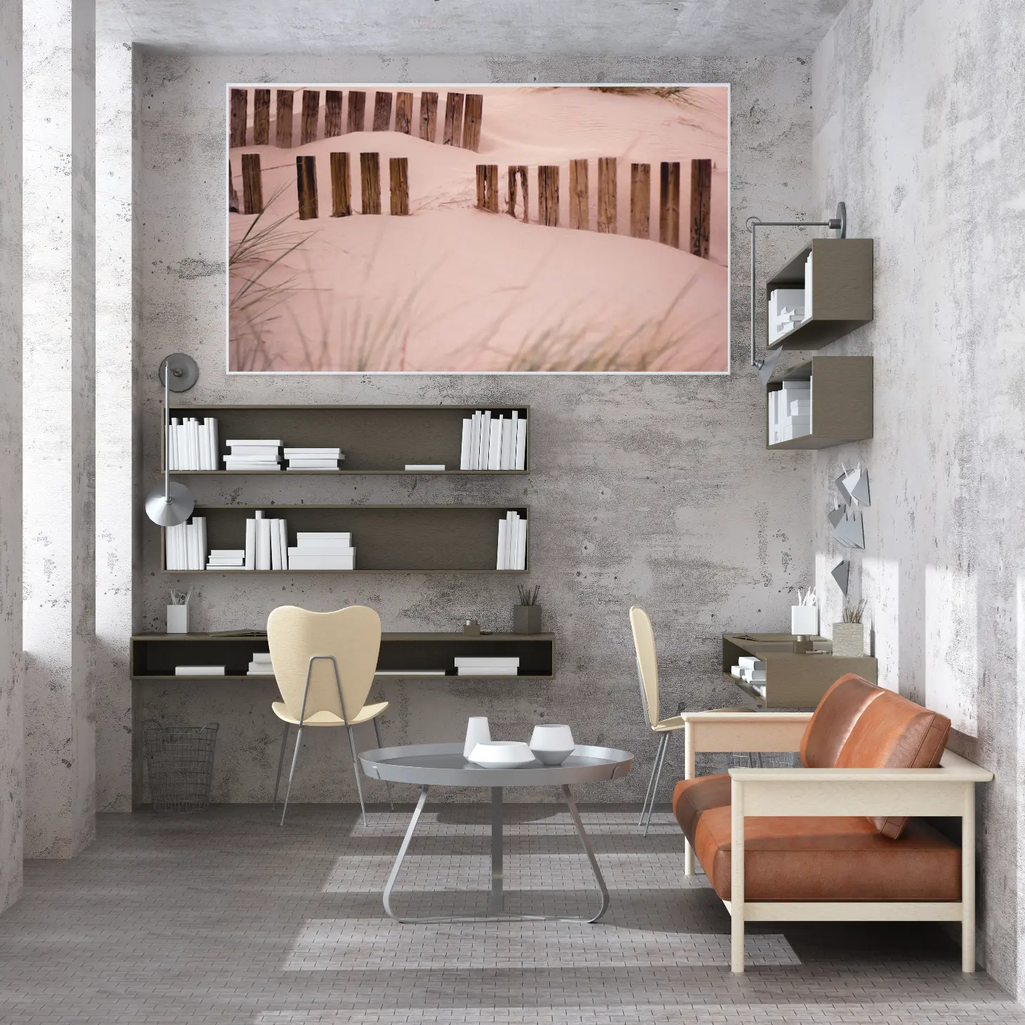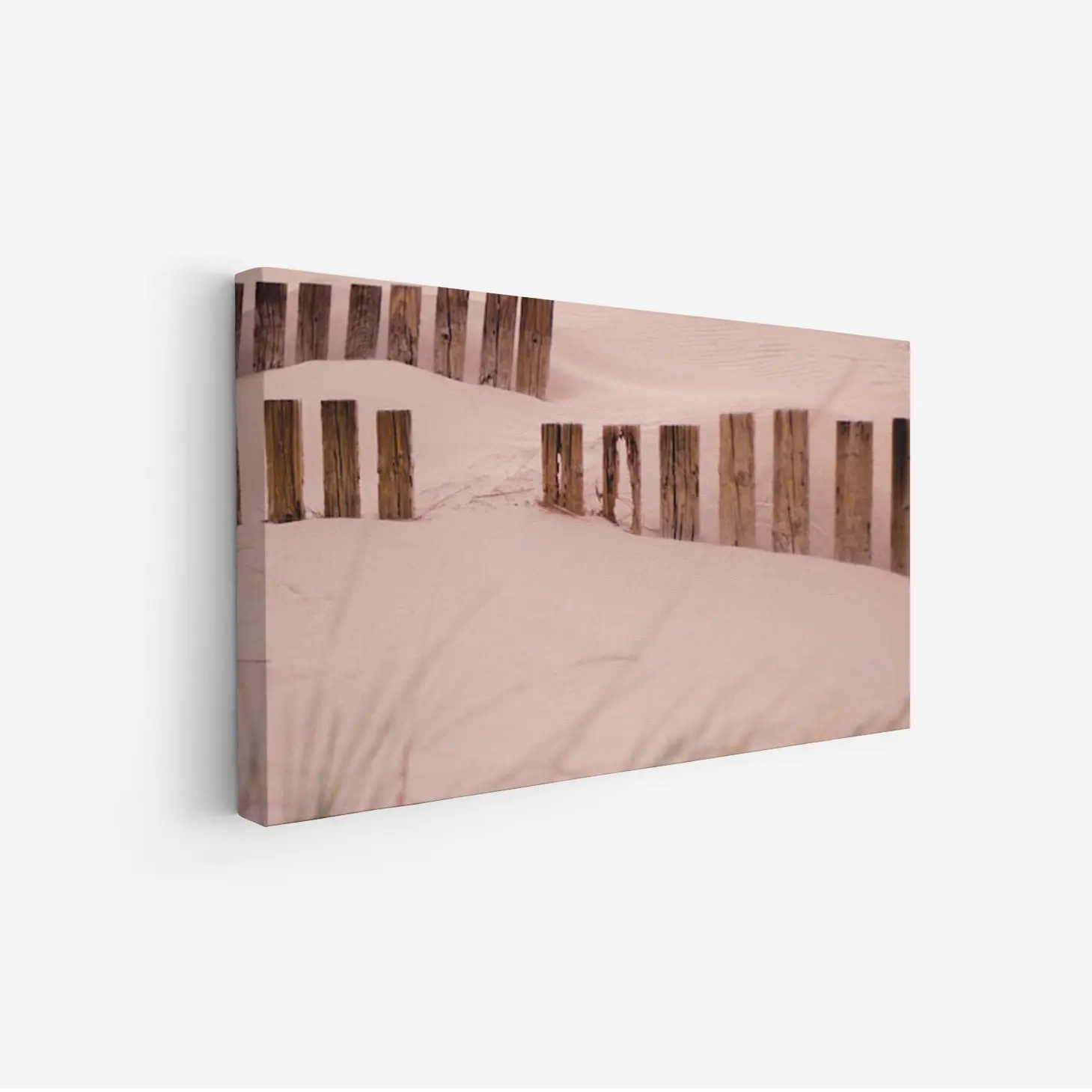 لوحات طبيعة تعكس جمال الرمال الوردية مع أعمدة خشبية، أجواء هادئة ومريحة، لوحات جدارية للمنزل، لوحات فخمة.