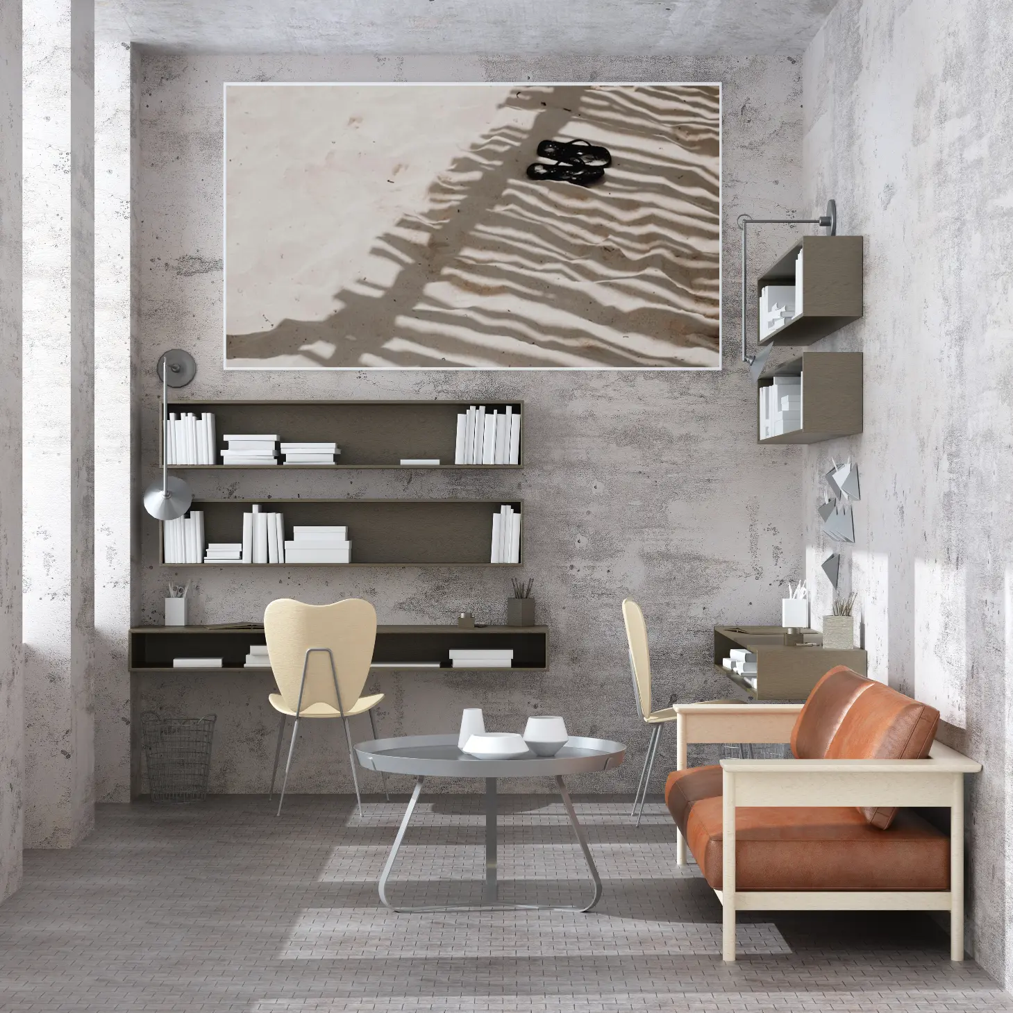 لوحات طبيعة تعكس ظلال الرمال مع صندل أسود، ألوان دافئة وجو هادئ. لوحات فنية عصرية، لوحات جدارية للمنزل، لوحات بسيطة.