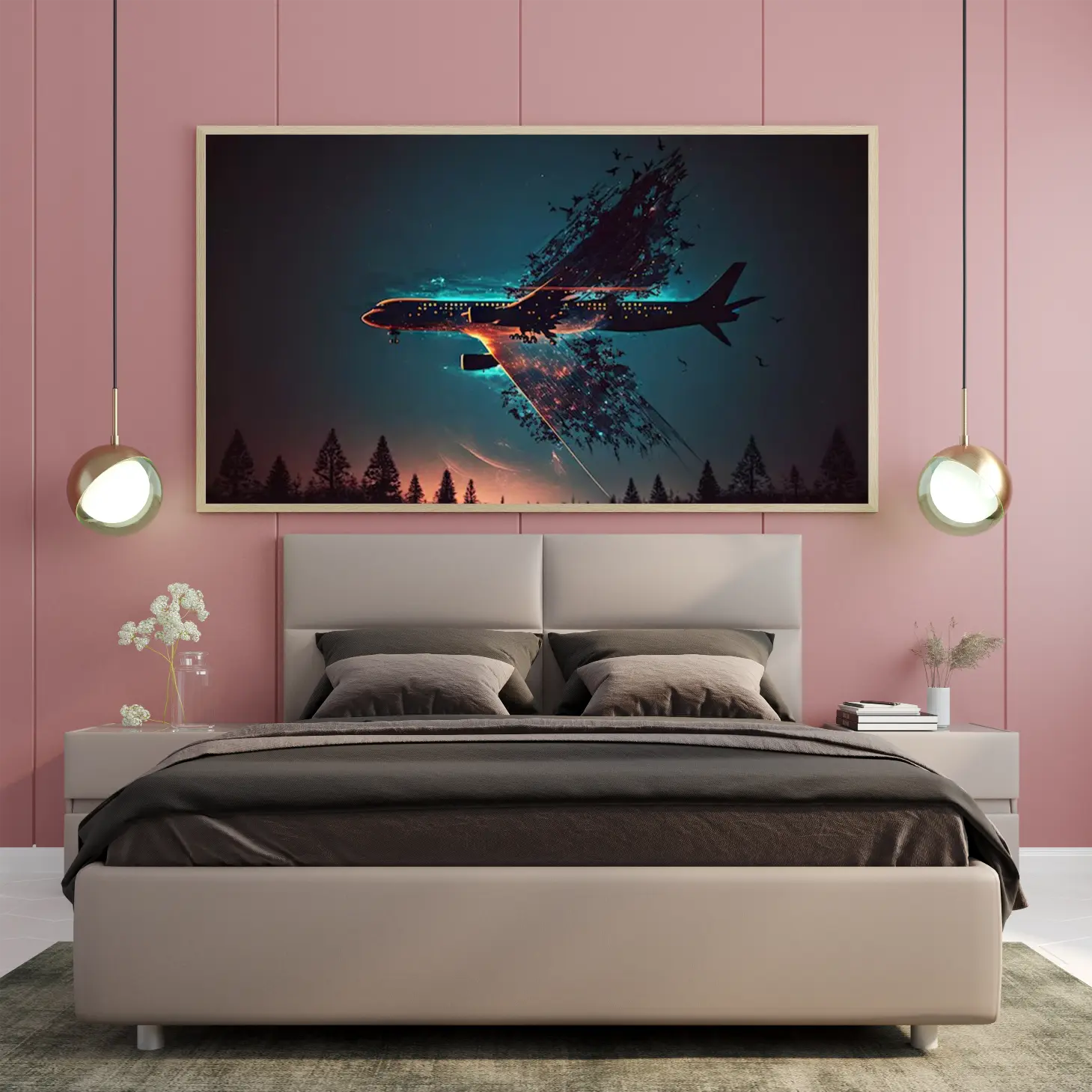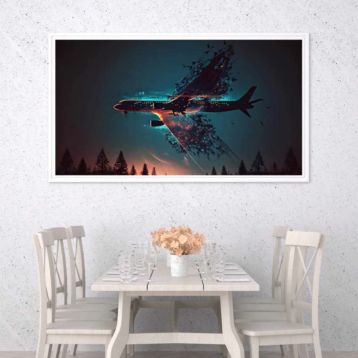 استمتع بتجربة فنية فريدة مع هذه اللوحة التي تجمع بين جمال الطيران وسحر الطبيعة. تصميمها المبتكر يخلق توازنًا مثاليًا بين الحركة والهدوء، مما يجعلها إضافة مثالية لأي مساحة تبحث عن لمسة من الإلهام. اجعل من جدرانك لوحة تعبر عن شغفك بالمغامرة والحرية.