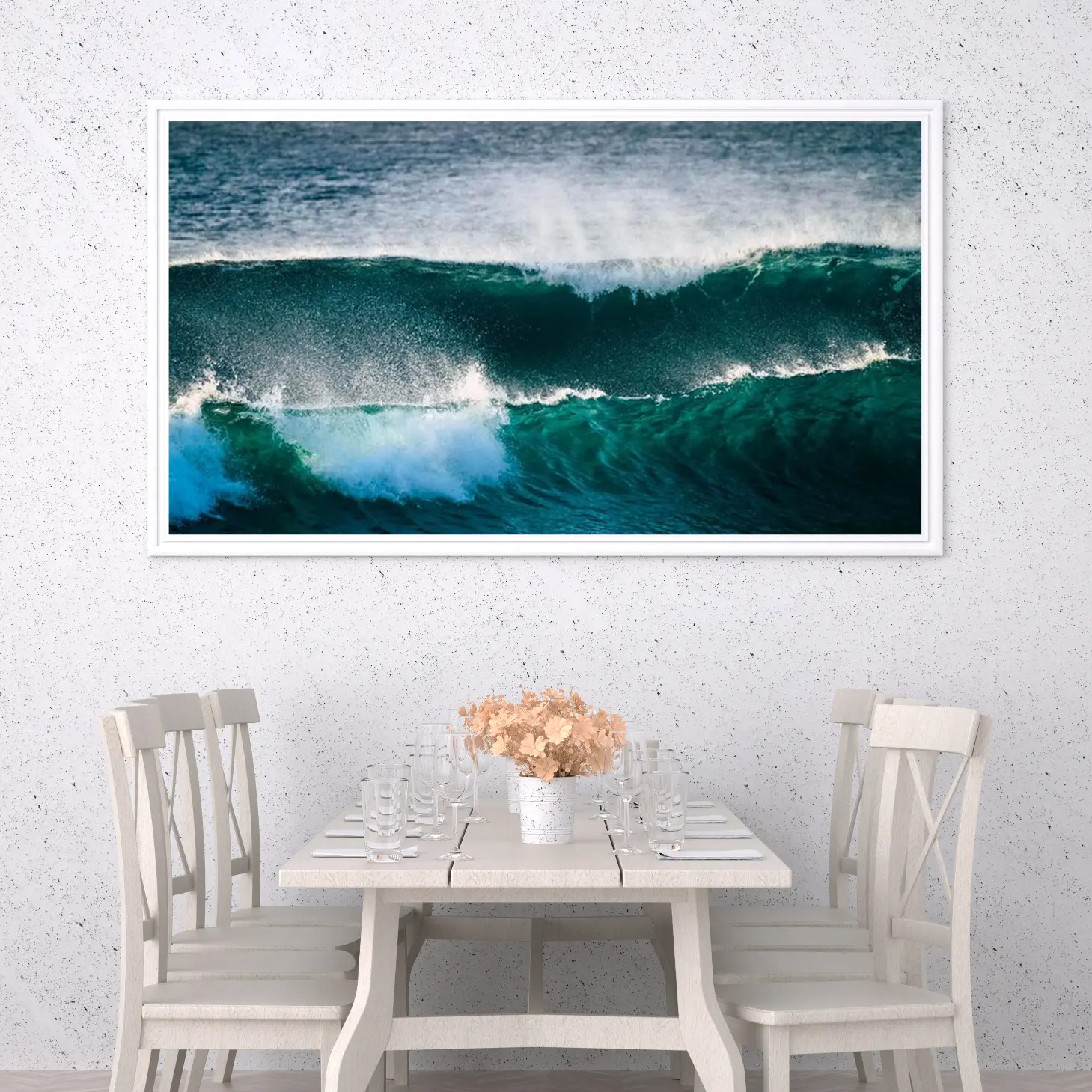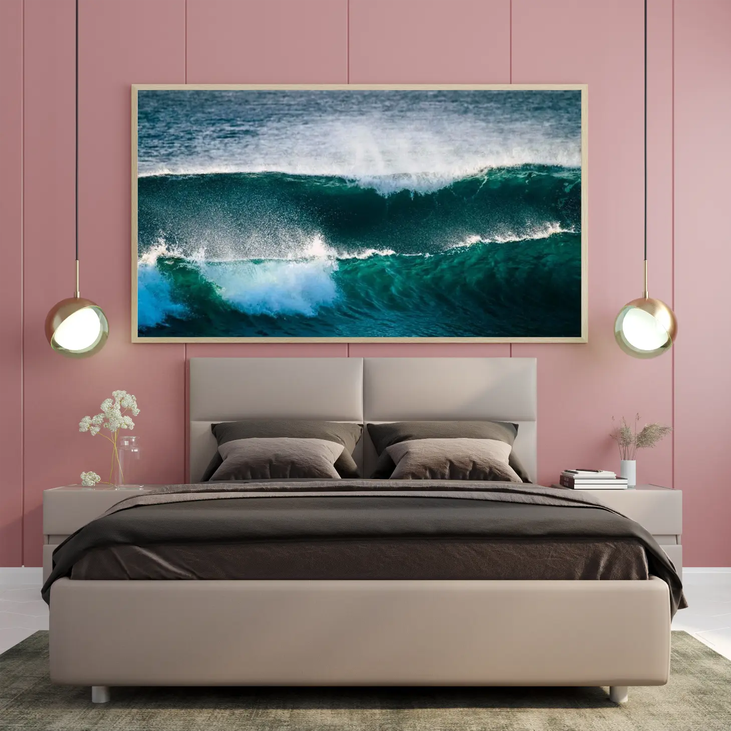 استمتع بجمال البحر مع هذه اللوحة الفنية التي تجسد قوة الأمواج ورونقها. تضفي الألوان الزرقاء المتدرجة لمسة من الانتعاش والهدوء على أي مساحة، مما يجعلها خيارًا مثاليًا لعشاق الطبيعة والفن. اجعل من جدران منزلك لوحة حية تعكس روح البحر.