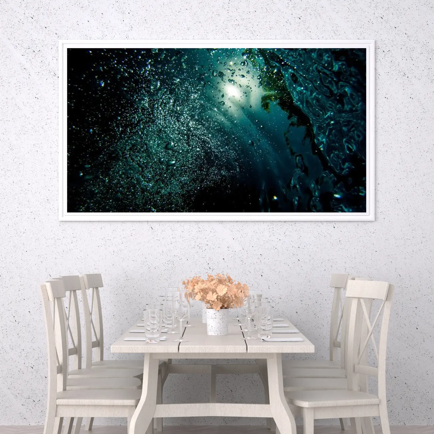 استمتع بجمال الطبيعة الخلابة مع هذه اللوحة التي تجسد لحظة ساحرة تحت الماء، حيث تتراقص الفقاعات في تناغم مع أشعة الشمس المتلألئة. إنها إضافة مثالية لأي مساحة، تعكس الهدوء والعمق، وتدعوك لاستكشاف عالم من السكون والجمال.
