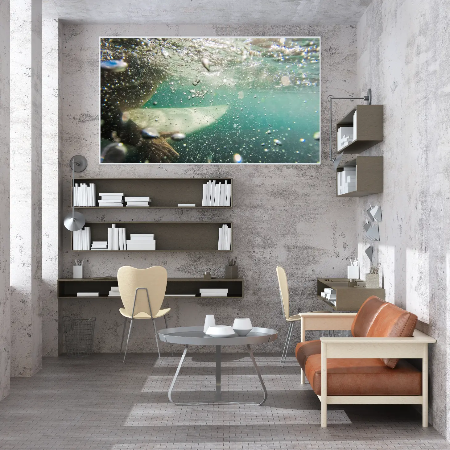 تجسد هذه اللوحات الفنية تجربة فريدة تأخذك إلى أعماق المحيط، حيث تتداخل الألوان الزرقاء والخضراء بشكل ساحر، مما يخلق إحساسًا بالهدوء والسكينة. تعكس الفقاعات المتناثرة على السطح حركة الماء، مما يضيف بعدًا ديناميكيًا إلى المشهد. إن هذا العمل الفني يجسد جمال الطبيعة البحرية، ويعكس لحظة من السكون وسط الحركة، مما يجعله خيارًا مثاليًا لعشاق البحر.
