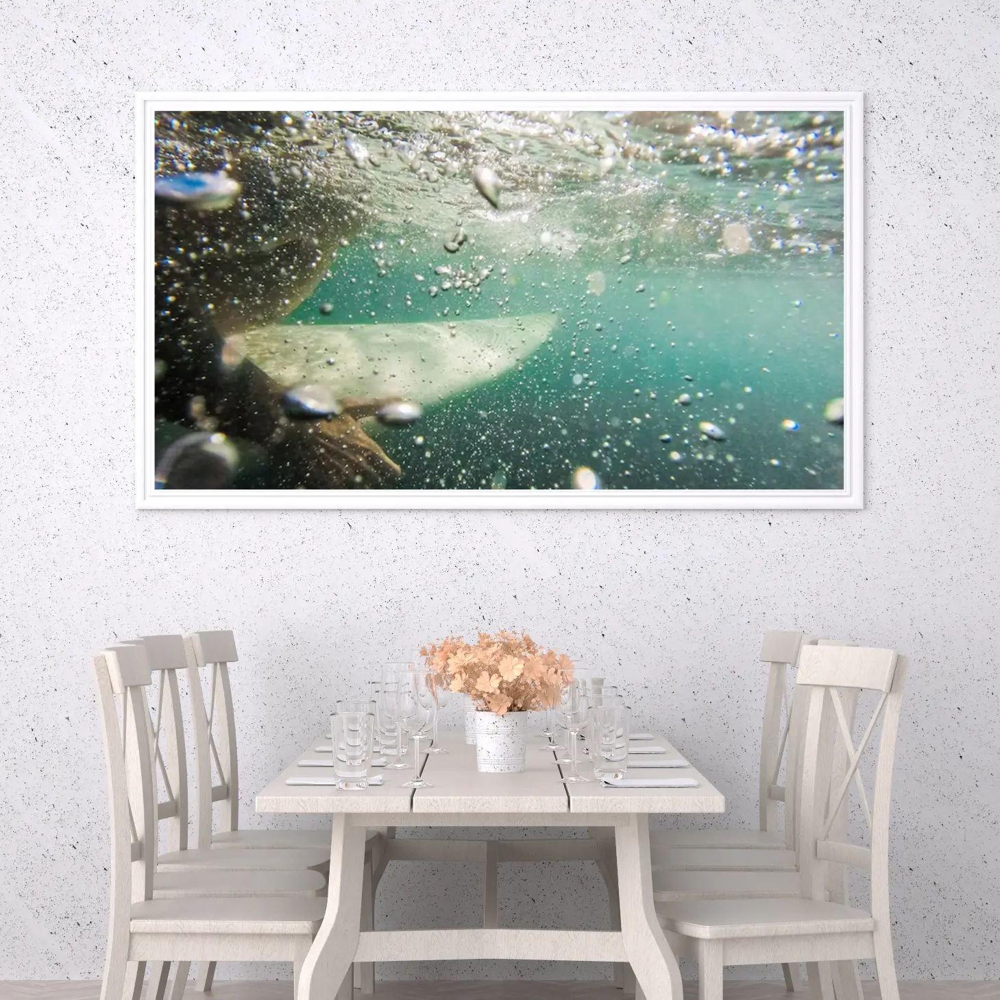 استمتع بجمال الطبيعة الخلابة مع هذه اللوحة الفنية التي تلتقط لحظة ساحرة تحت الماء. تعكس الألوان الزاهية والفقاعات المتراقصة شعورًا بالحرية والحيوية، مما يجعلها إضافة مثالية لأي مساحة تبحث عن لمسة من الإلهام.