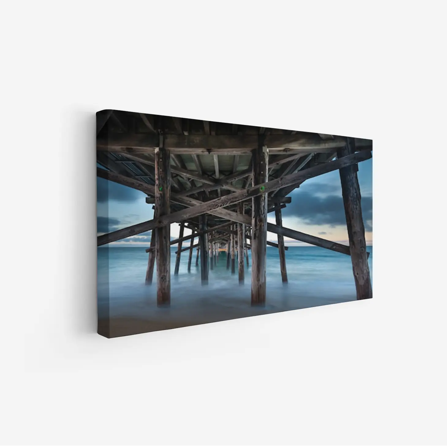 تجسد هذه اللوحات كانفاس جمال الطبيعة البحرية من خلال مشهد ساحر لجسر خشبي يمتد فوق المياه. تتناغم الألوان الهادئة مع تفاصيل الخشب الطبيعي، مما يخلق توازنًا مثاليًا بين العناصر الطبيعية والعمارة البشرية. إن هذا العمل الفني يعكس روح المغامرة والاستكشاف، حيث يتيح للناظر الانغماس في عمق المشهد وكأنهم يسيرون تحت الجسر.