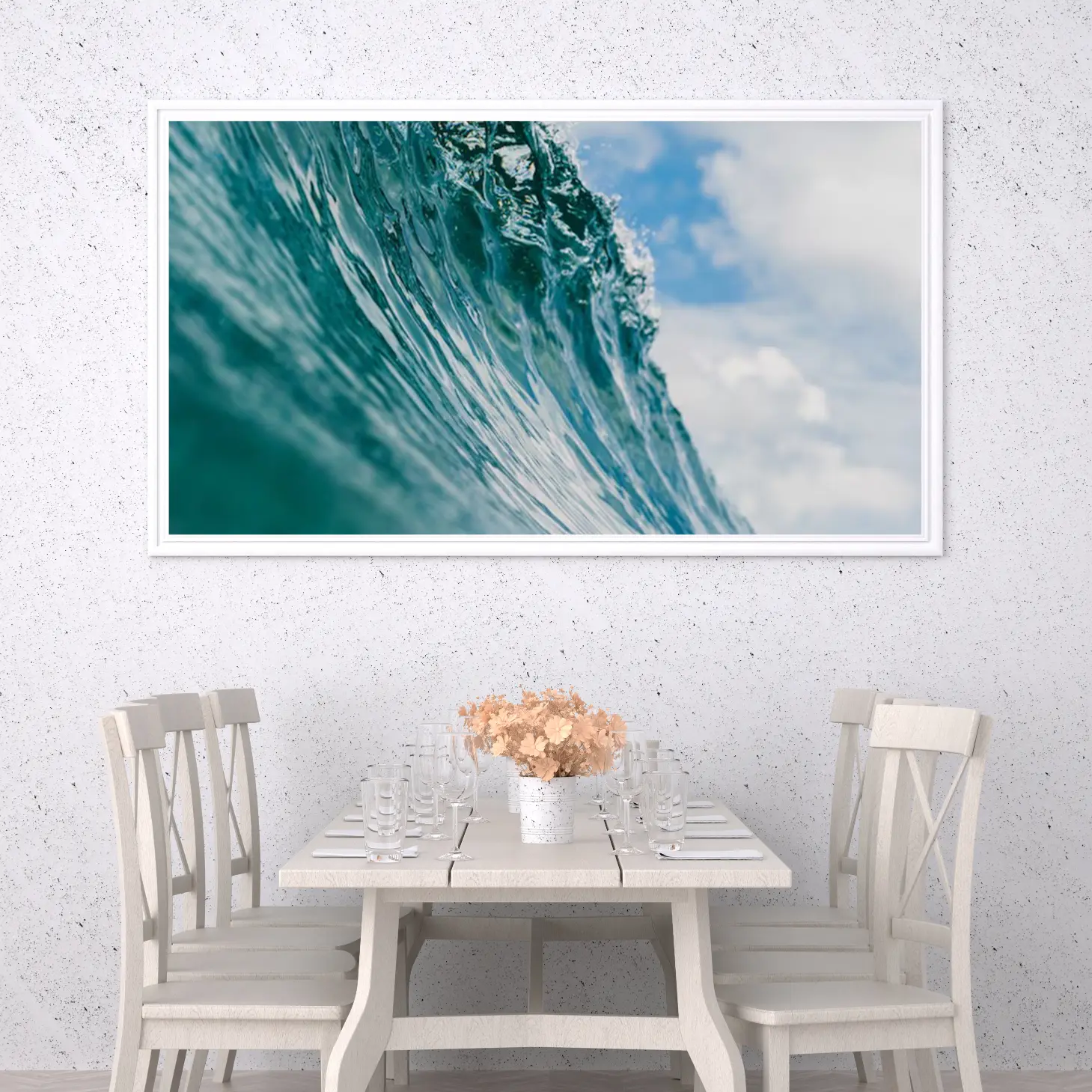 تجسد هذه اللوحات كانفاس جمال الطبيعة الخلابة، حيث تتألق الأمواج الزرقاء في تناغم رائع مع السماء الصافية. تعكس الألوان الزاهية والحركة الديناميكية للماء إحساسًا بالحرية والانتعاش، مما يجعلها خيارًا مثاليًا لإضفاء لمسة من الحيوية على أي مساحة داخلية. إن تفاصيل الموجات المتلاطمة تضفي عمقًا بصريًا يجذب الأنظار، مما يجعلها نقطة محورية في أي ديكور منزلي.