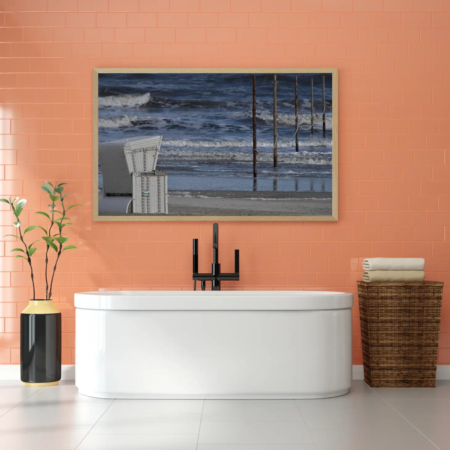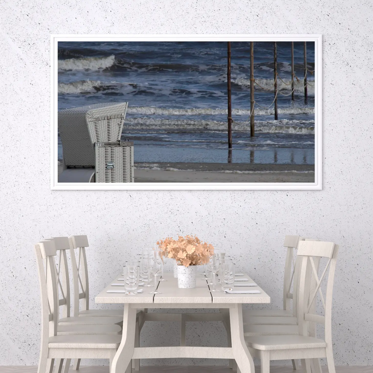 استمتع بجمال البحر في كل لحظة مع هذه اللوحة الفنية الرائعة. تعكس الأمواج المتلاطمة والأعمدة الخشبية إحساسًا بالهدوء والسكينة، مما يجعلها إضافة مثالية لأي مساحة. اجعل من منزلك ملاذًا فنيًا يعبر عن روح الطبيعة وجمالها.