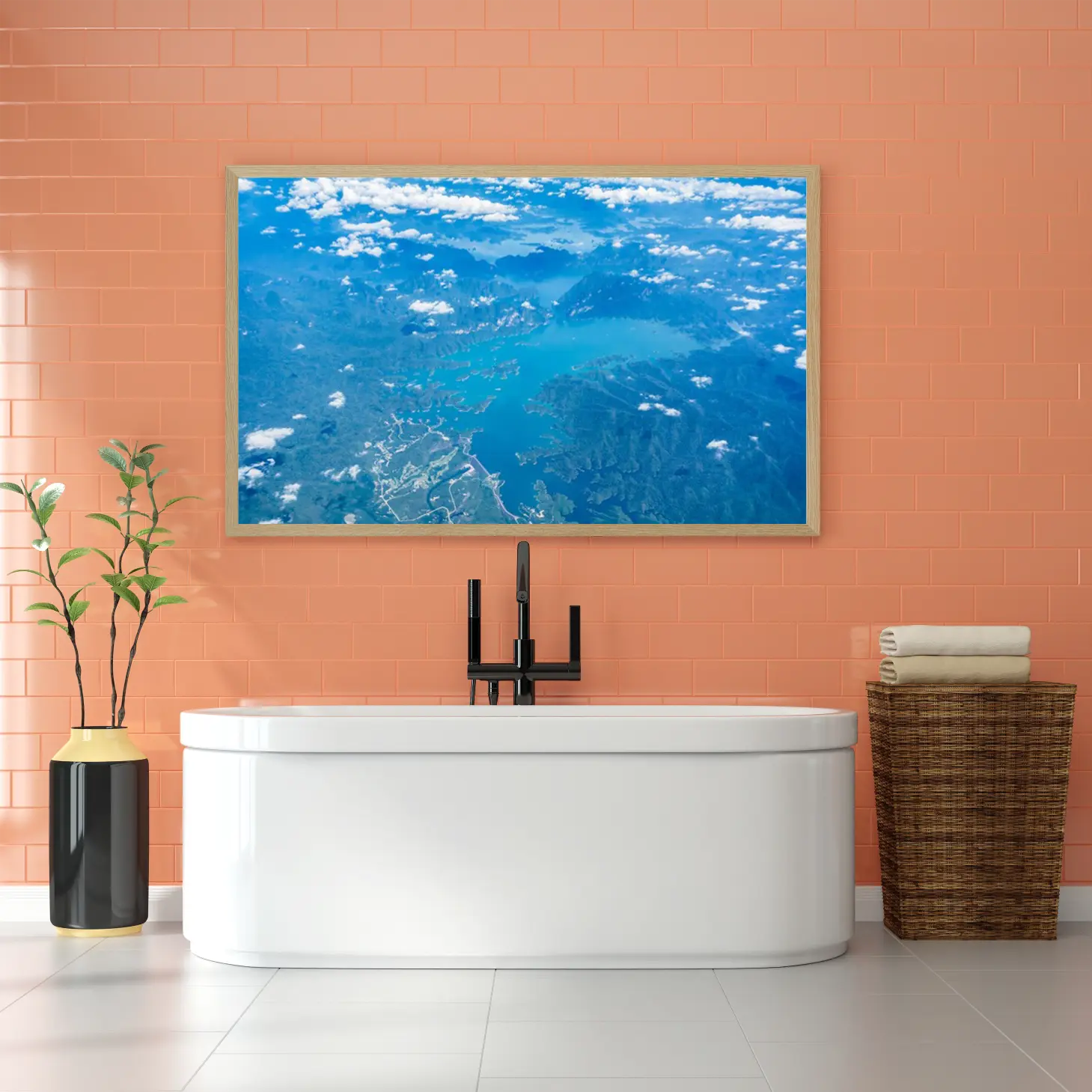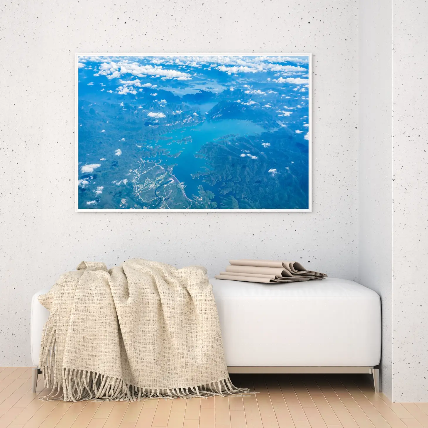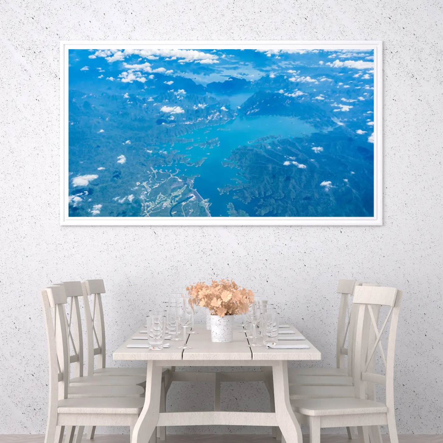 استمتع بجمال الطبيعة الخلابة مع هذه اللوحة الفنية التي تبرز منظرًا ساحرًا من السماء. تعكس الألوان الزاهية والمياه الهادئة روح الهدوء والسكينة، مما يجعلها إضافة مثالية لأي مساحة تبحث عن لمسة من الإلهام والجمال. اجعل كل زاوية من منزلك تنبض بالحياة مع هذه التحفة الفنية الرائعة.