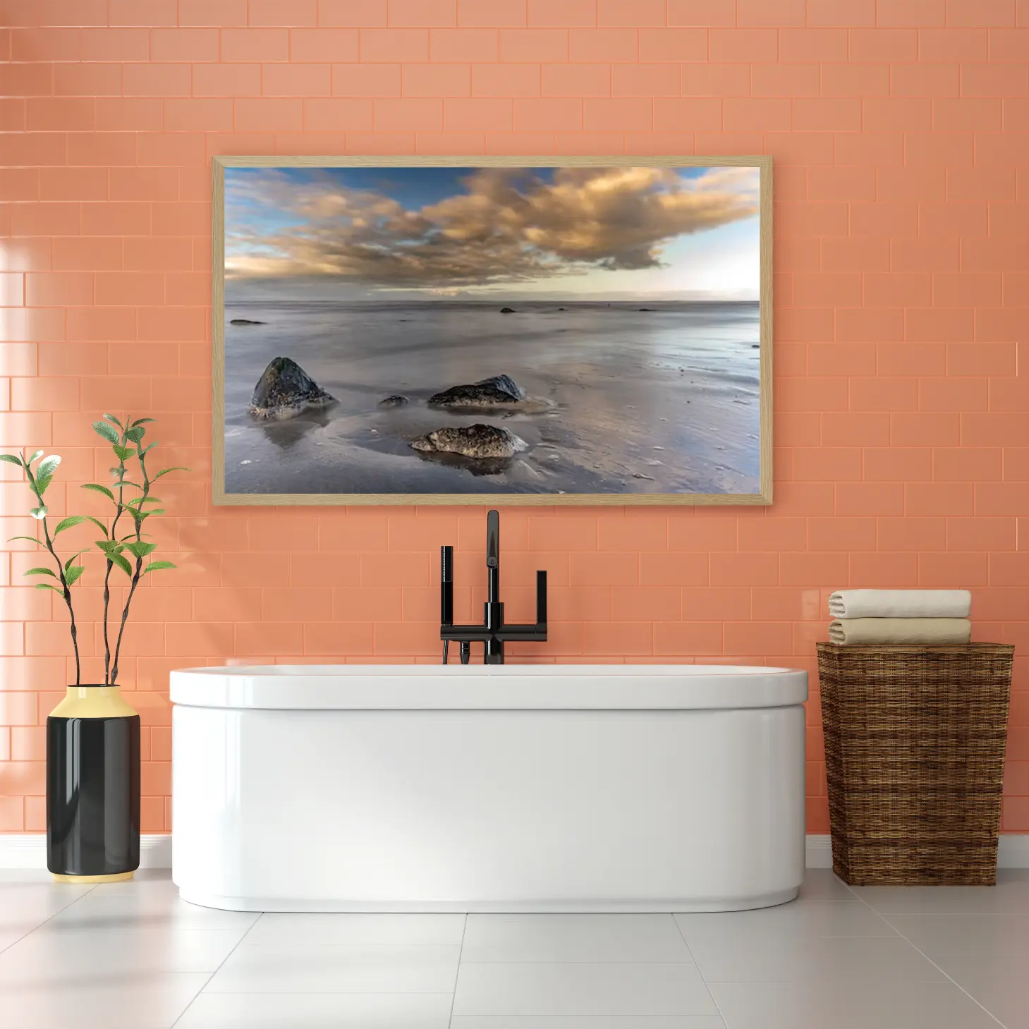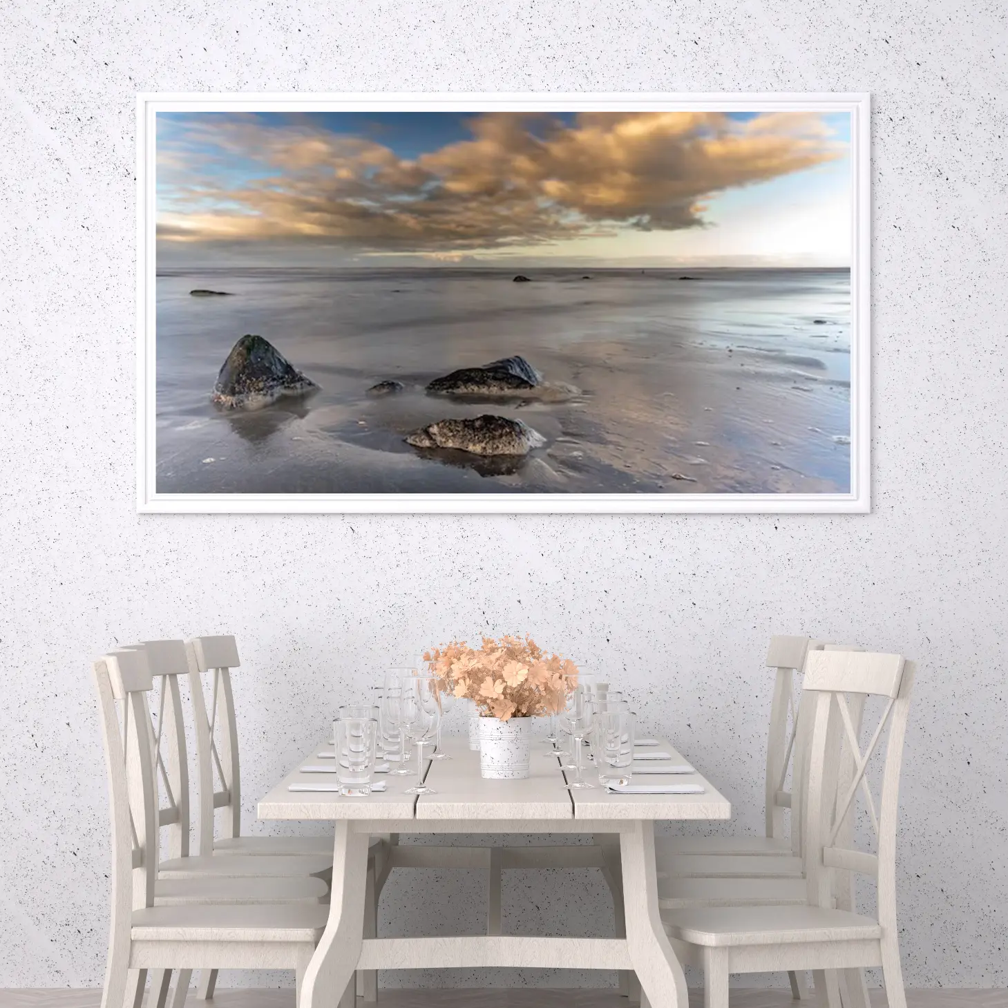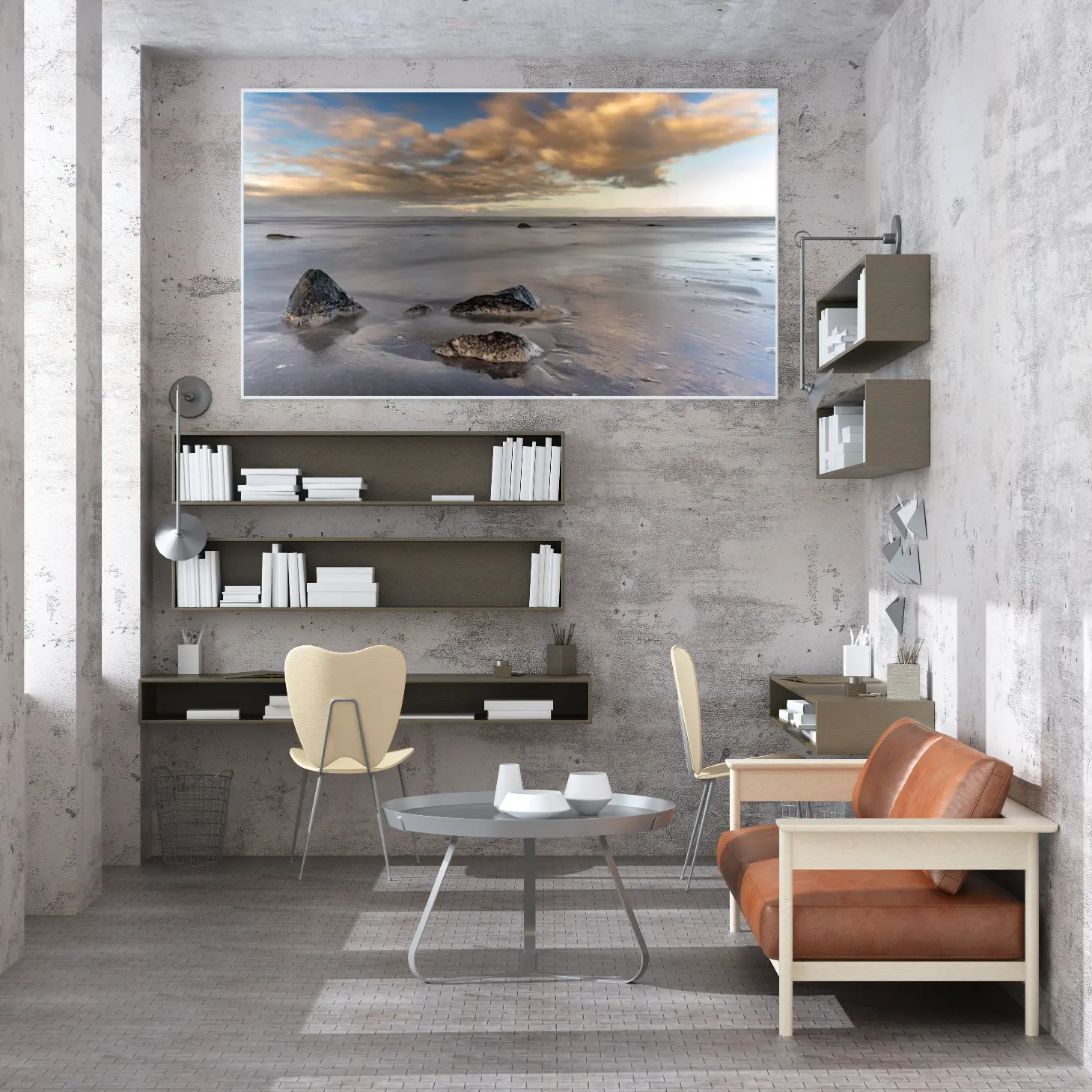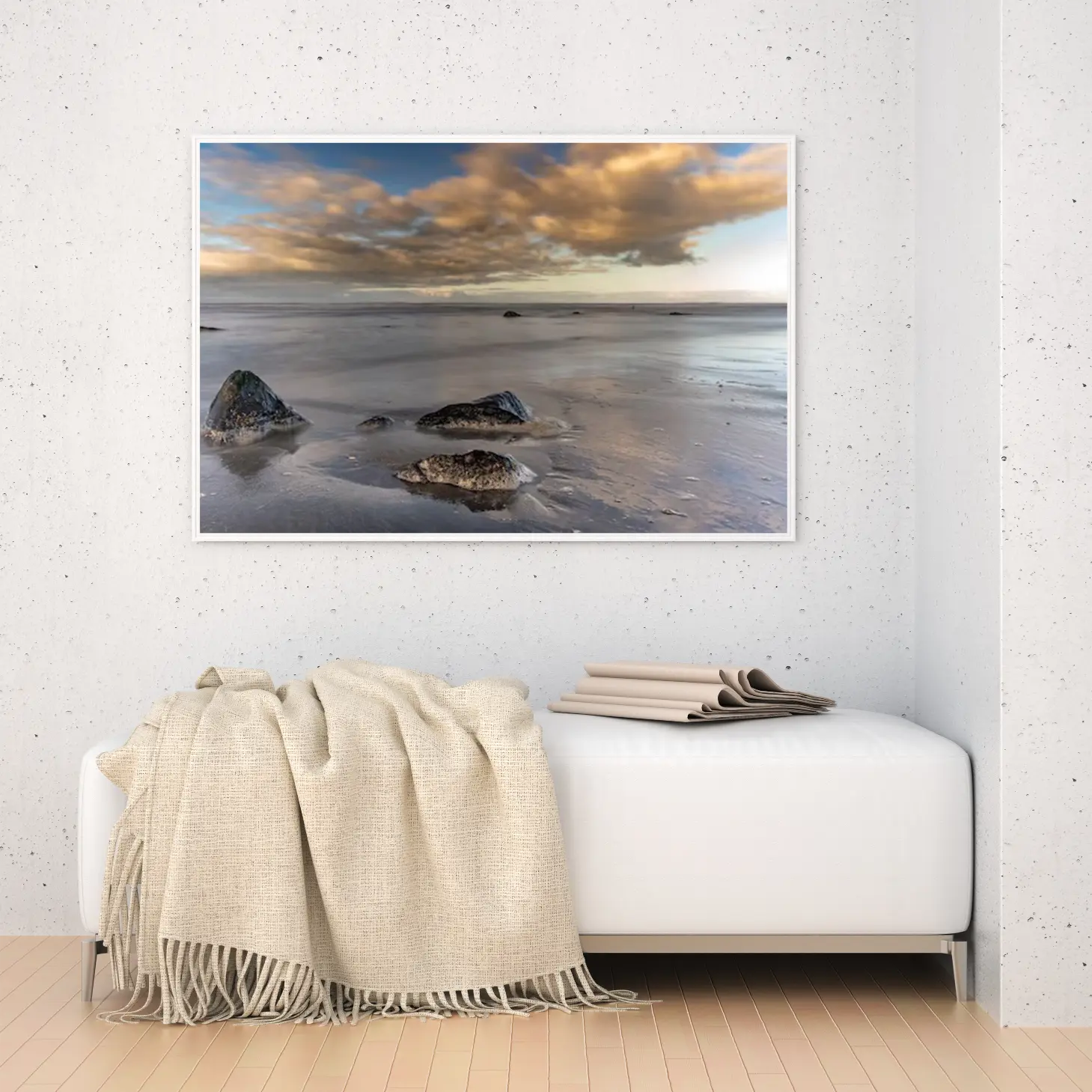 استمتع بجمال الطبيعة الخلابة مع هذه اللوحة الفنية التي تجسد لحظة هادئة على شاطئ البحر. تعكس الألوان الدافئة والسماء الملبدة بالغيوم سكونًا يبعث على التأمل، مما يجعلها إضافة مثالية لأي مساحة تبحث عن لمسة من الأناقة والهدوء.