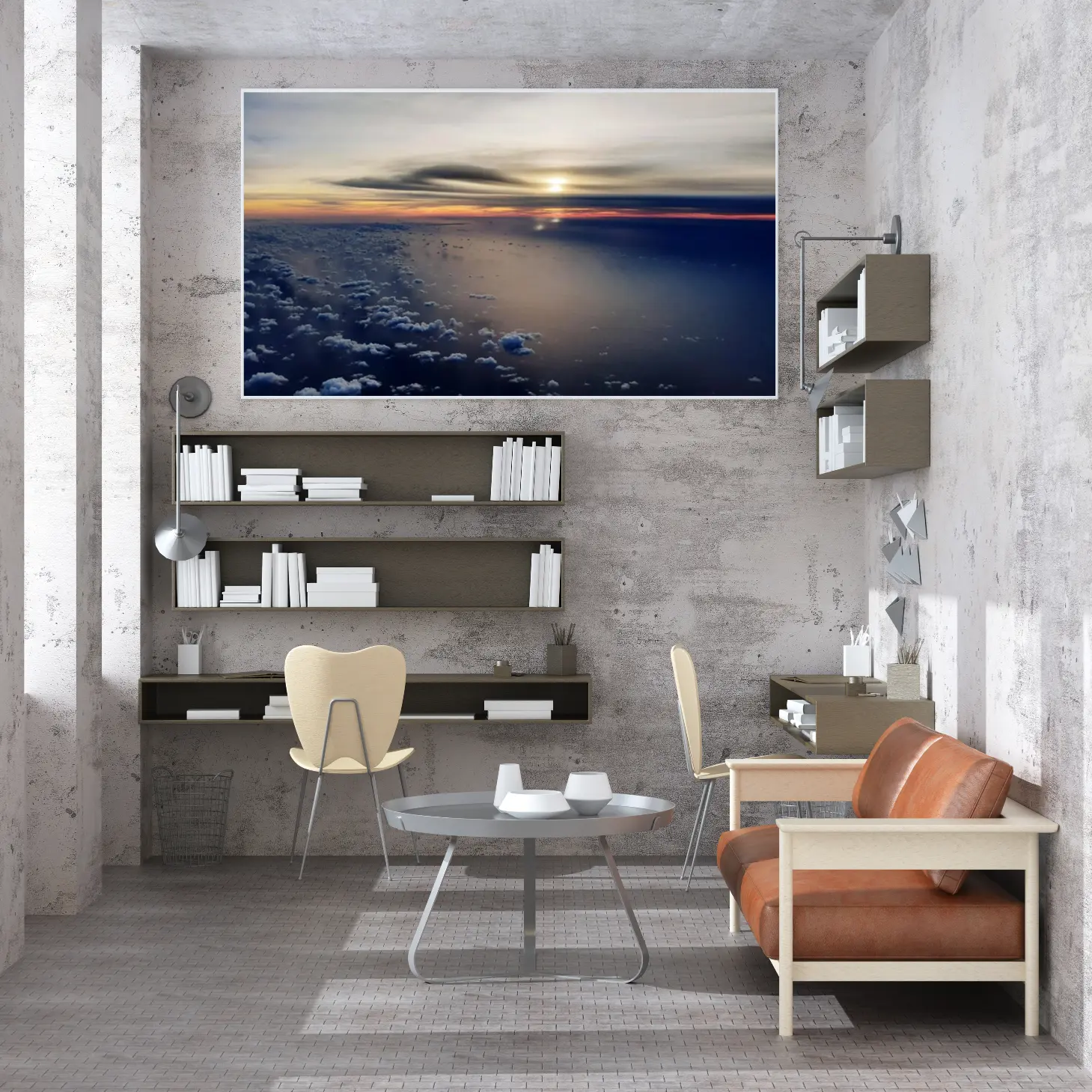 تتميز اللوحات بتفاصيل دقيقة تعكس جمال السحب التي تتراقص فوق سطح الماء، مما يخلق عمقًا بصريًا يجذب الأنظار. إن الانعكاسات المتلألئة على سطح الماء تضفي لمسة سحرية، مما يجعلها مثالية لتزيين الجدران في المنازل الحديثة أو المكاتب الأنيقة. يمكن أن تكون هذه القطعة الفنية نقطة محورية في أي غرفة، حيث تثير الإعجاب وتفتح باب الحوار.