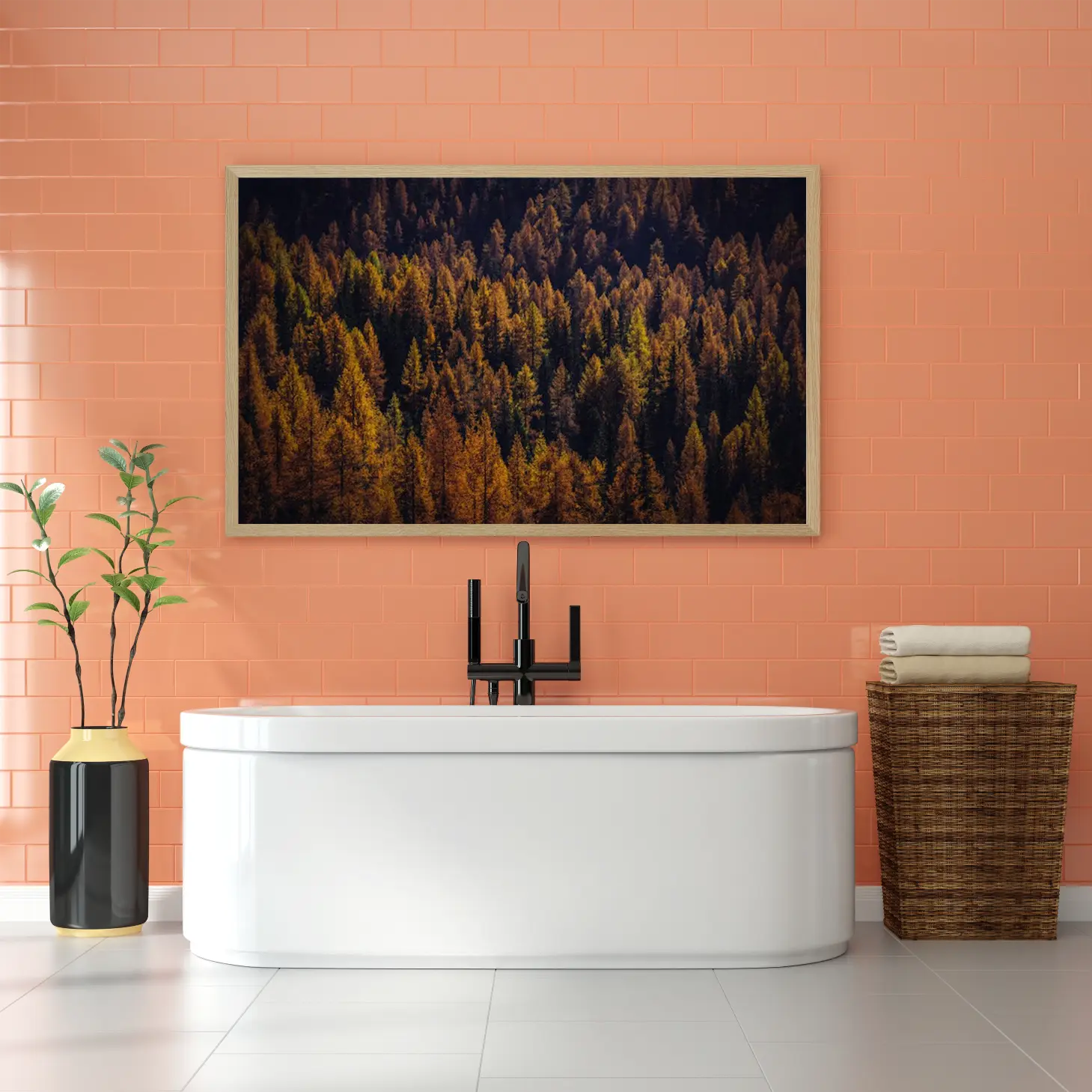 استمتع بجمال الطبيعة الخلابة مع هذه اللوحة الفنية التي تجسد غابات الخريف بألوانها الدافئة. تضفي تفاصيلها الدقيقة وألوانها الغنية لمسة من السحر والهدوء على أي مساحة، مما يجعلها خيارًا مثاليًا لعشاق الفن والطبيعة. اجعل من منزلك ملاذًا يعبّر عن ذوقك الرفيع.