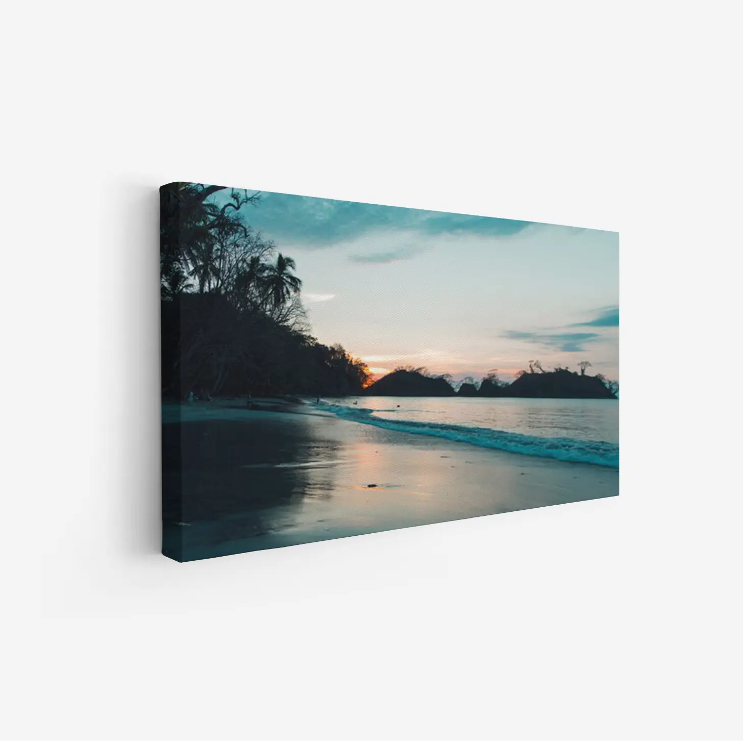 استمتع بجمال الطبيعة الخلابة مع هذه اللوحة التي تلتقط لحظة غروب الشمس الساحرة على شاطئ هادئ. تعكس الألوان الهادئة والمياه المتلألئة إحساسًا بالسكينة والراحة، مما يجعلها إضافة مثالية لأي مساحة تبحث عن لمسة من الأناقة والهدوء.