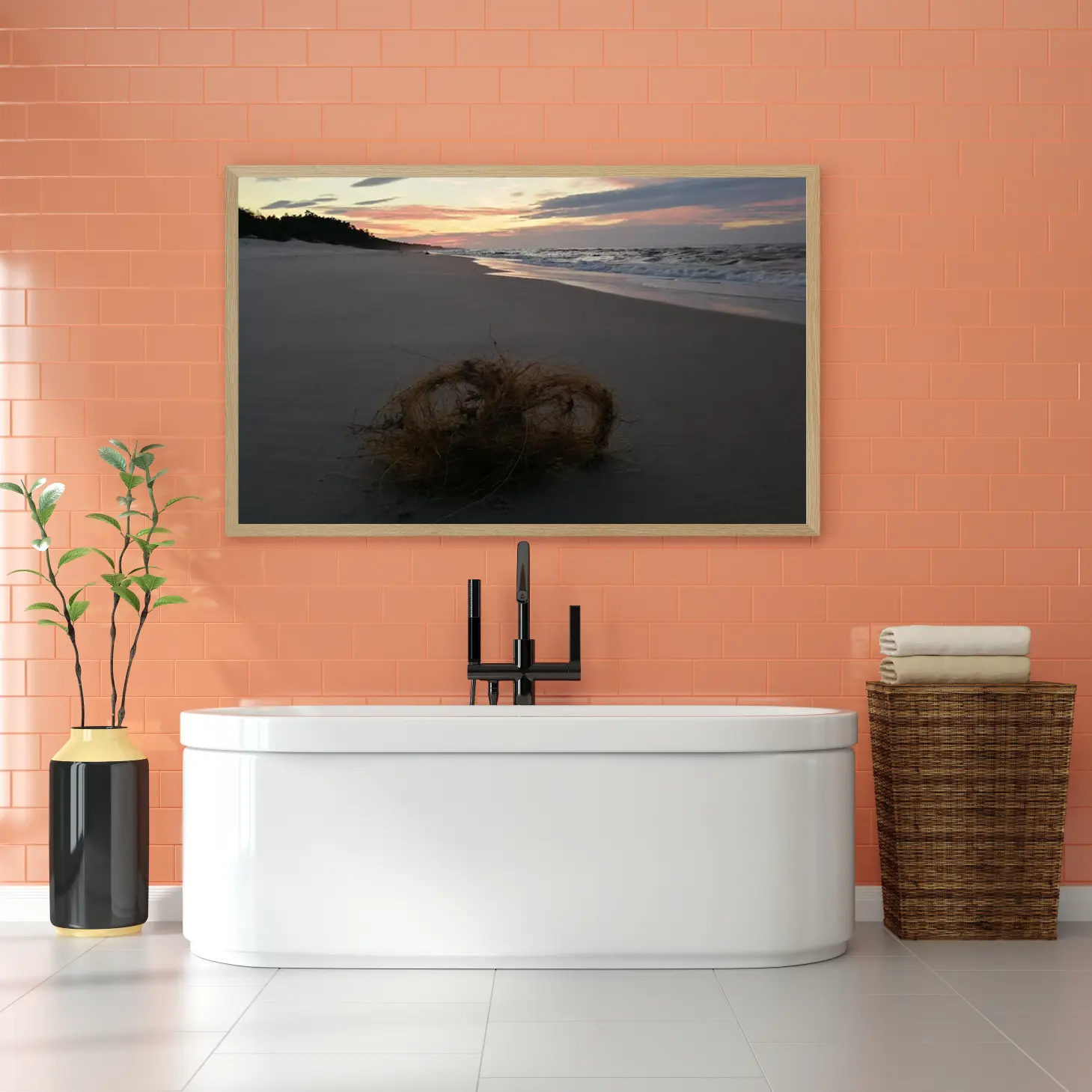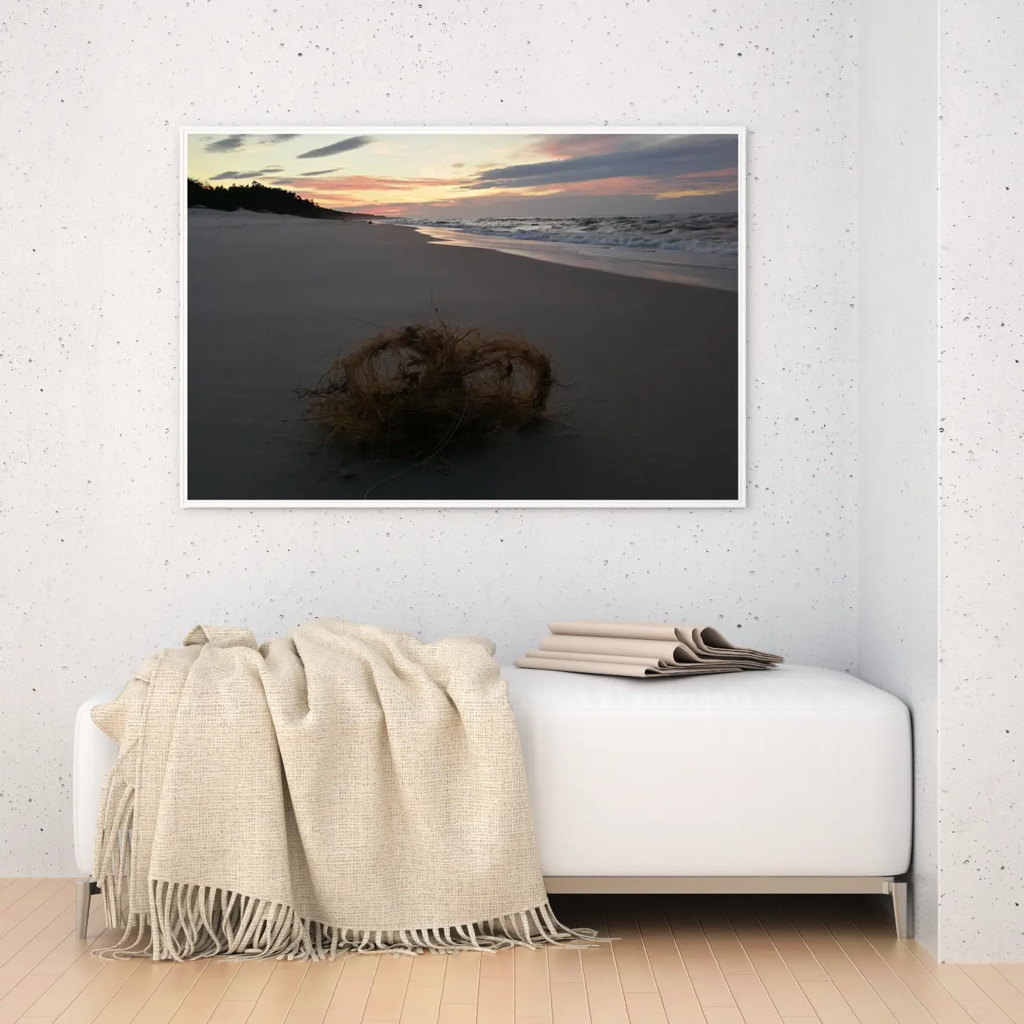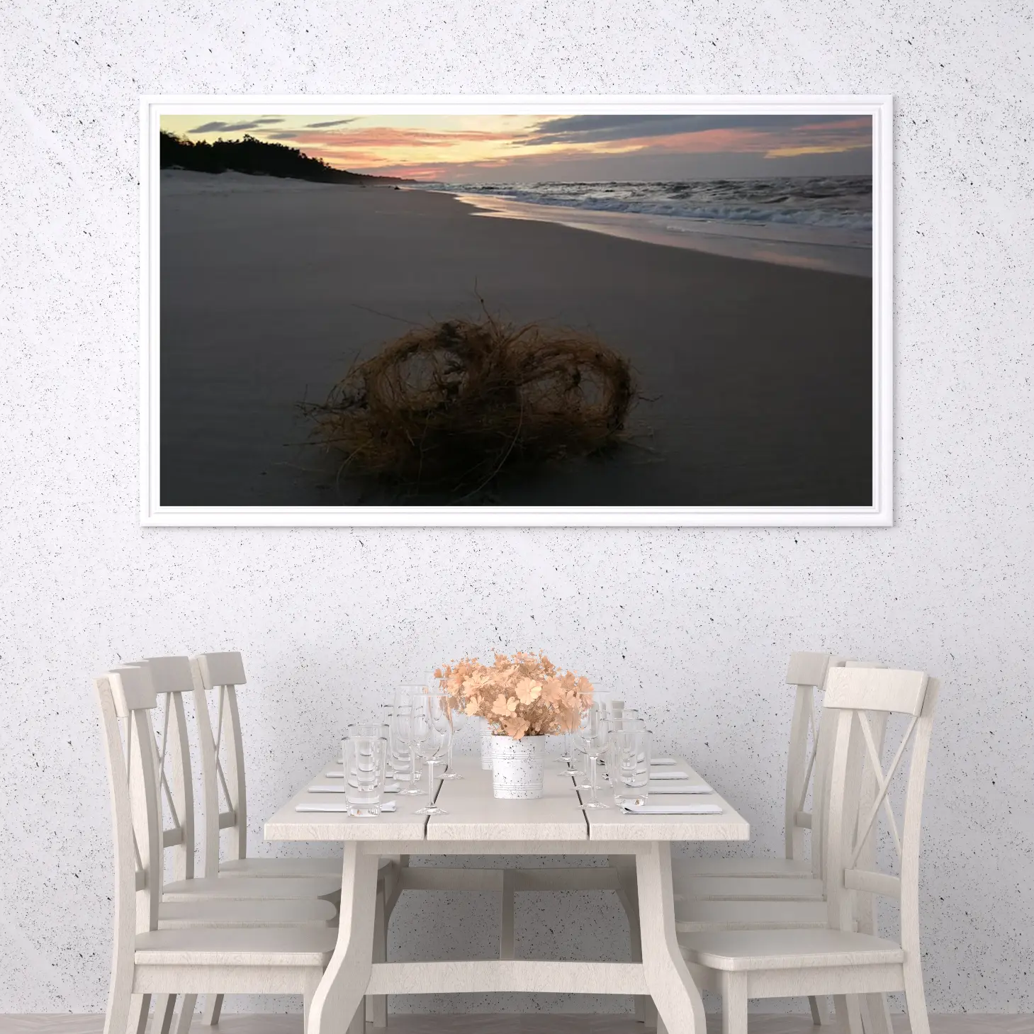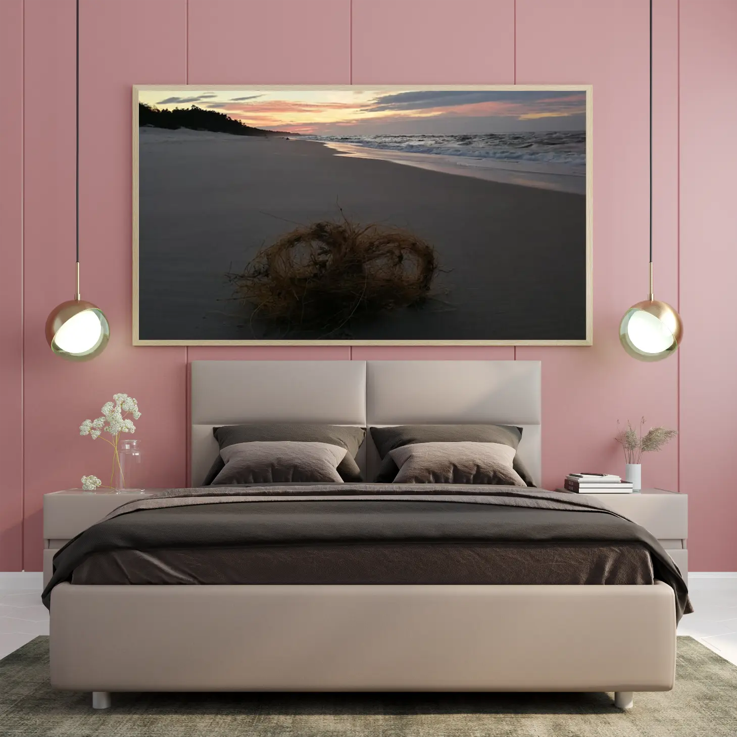 استمتع بجمال الطبيعة الخلابة مع هذه اللوحة الفنية التي تلتقط لحظة ساحرة على شاطئ البحر. تبرز الألوان الدافئة لغروب الشمس تفاصيل دقيقة، مما يضفي لمسة من السكون والهدوء على أي مساحة. اجعل من منزلك ملاذًا للفن والجمال مع هذه التحفة الفريدة.