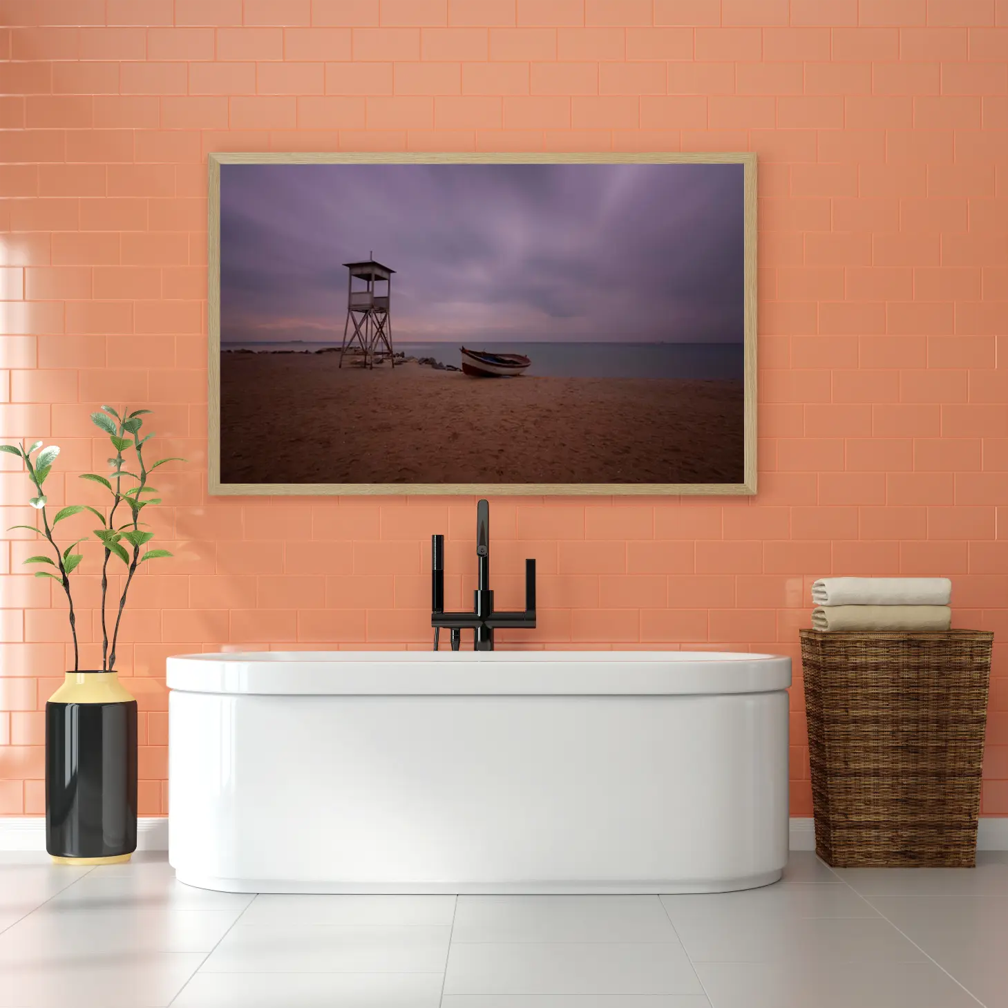 تجسد هذه اللوحات كانفاس جمال الطبيعة البحرية في لحظة هادئة، حيث تتناغم الألوان الهادئة مع المشهد الساحلي. يبرز في الخلفية برج المراقبة، الذي يضيف لمسة من الأمان والسكينة، بينما تتناثر السحب بلطف في السماء، مما يخلق جواً من الغموض والسحر. إن تدرجات الألوان الوردية والبنفسجية تضفي شعوراً بالهدوء، مما يجعلها مثالية لتزيين أي مساحة داخلية.