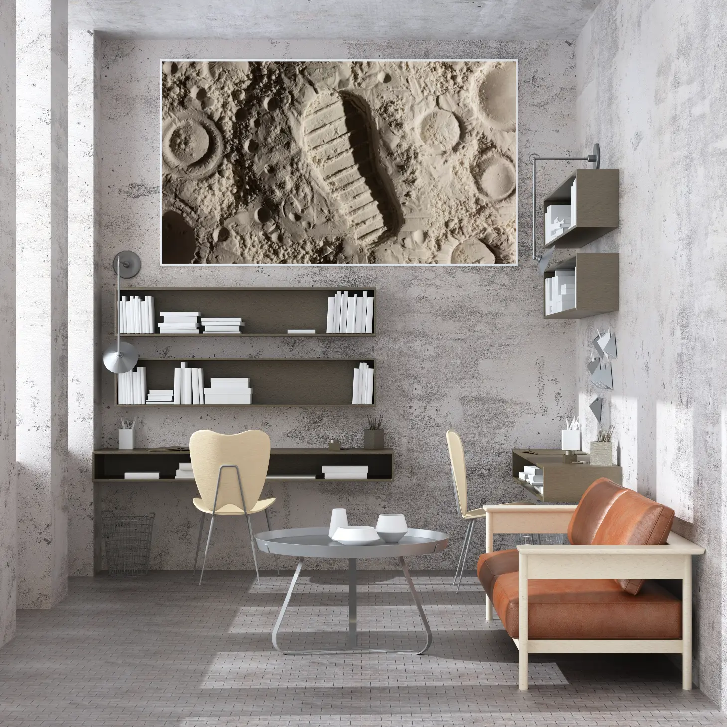 تتميز هذه اللوحات الجدارية الفخمة بتصميمها العصري الذي يجمع بين البساطة والعمق، مما يجعلها خيارًا مثاليًا لإضفاء لمسة من الأناقة على أي مساحة. تعكس اللوحة مشهدًا فريدًا من نوعه، حيث يظهر أثر قدم واضح على سطح رملي، مما يثير فضول المشاهد ويعكس إحساسًا بالاستكشاف والمغامرة. هذا التصميم المبتكر يجعله مناسبًا لمختلف الاستخدامات، سواء في المنزل أو المكتب، حيث يمكن أن يكون نقطة محورية في الصالون أو مدخل المنزل.
