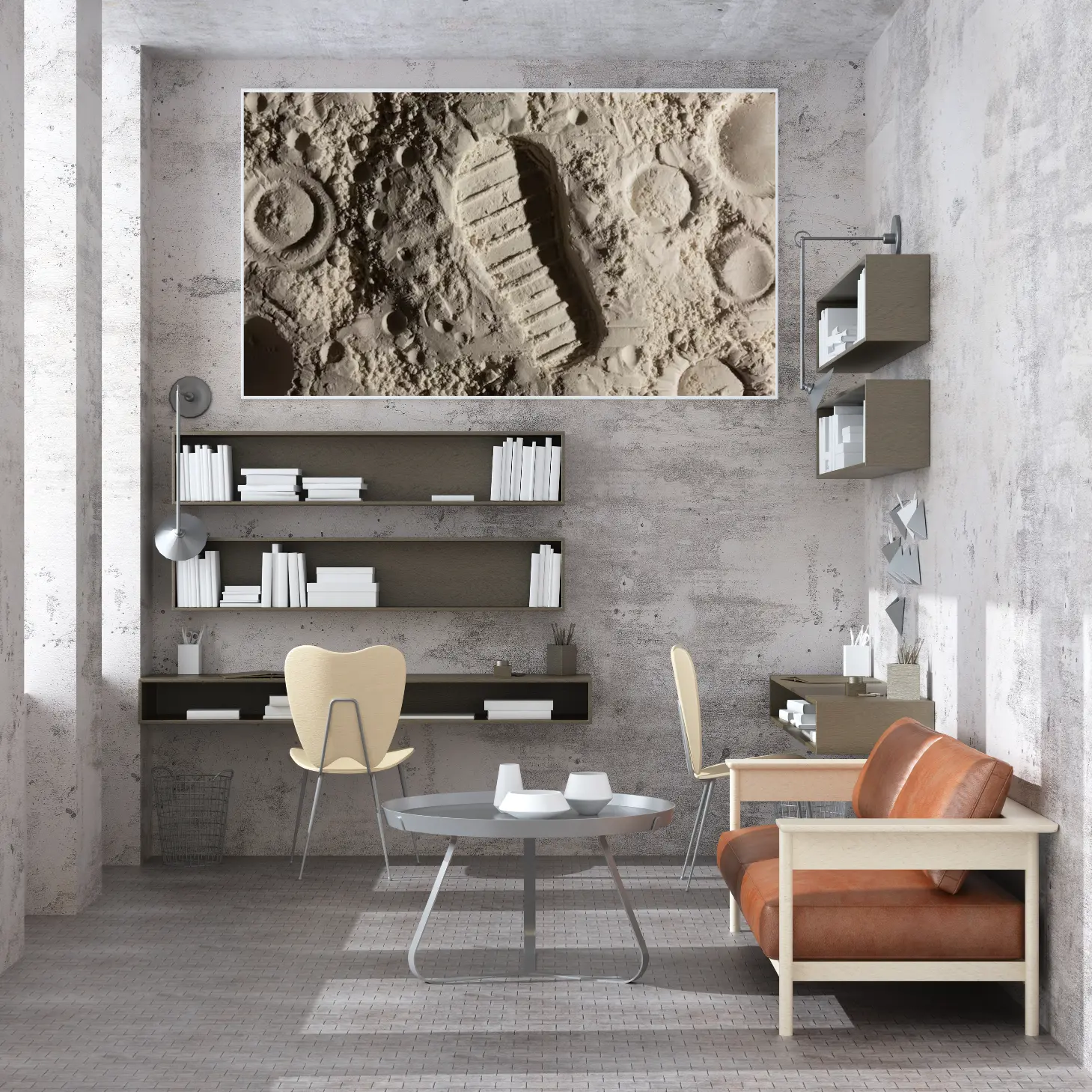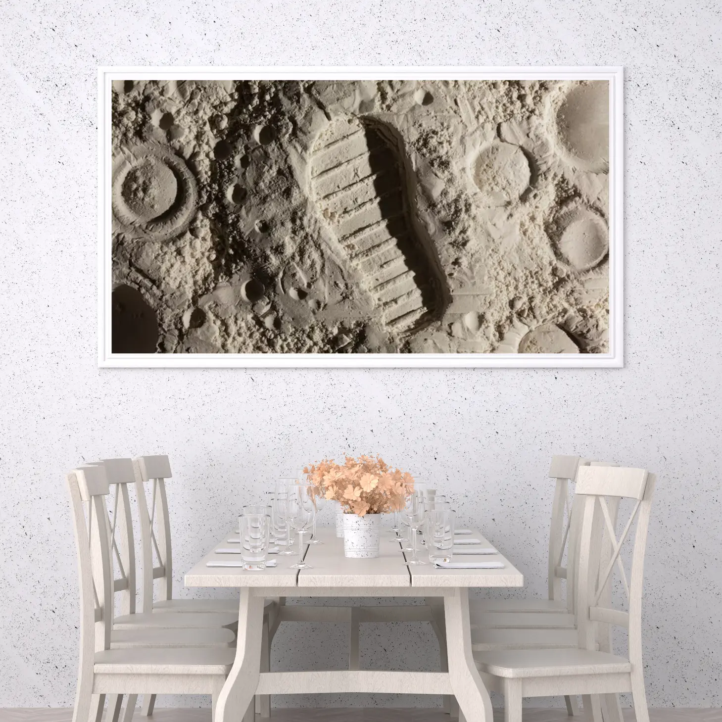 اكتشف جمال اللحظات الفريدة مع هذه اللوحة الفنية التي تجسد أثر الخطوات على سطح القمر. تصميمها الفريد يضفي لمسة من الإلهام والخيال، مما يجعلها إضافة مثالية لأي مساحة تبحث عن التميز. اجعل من جدرانك لوحة تحكي قصة المغامرة والاكتشاف.