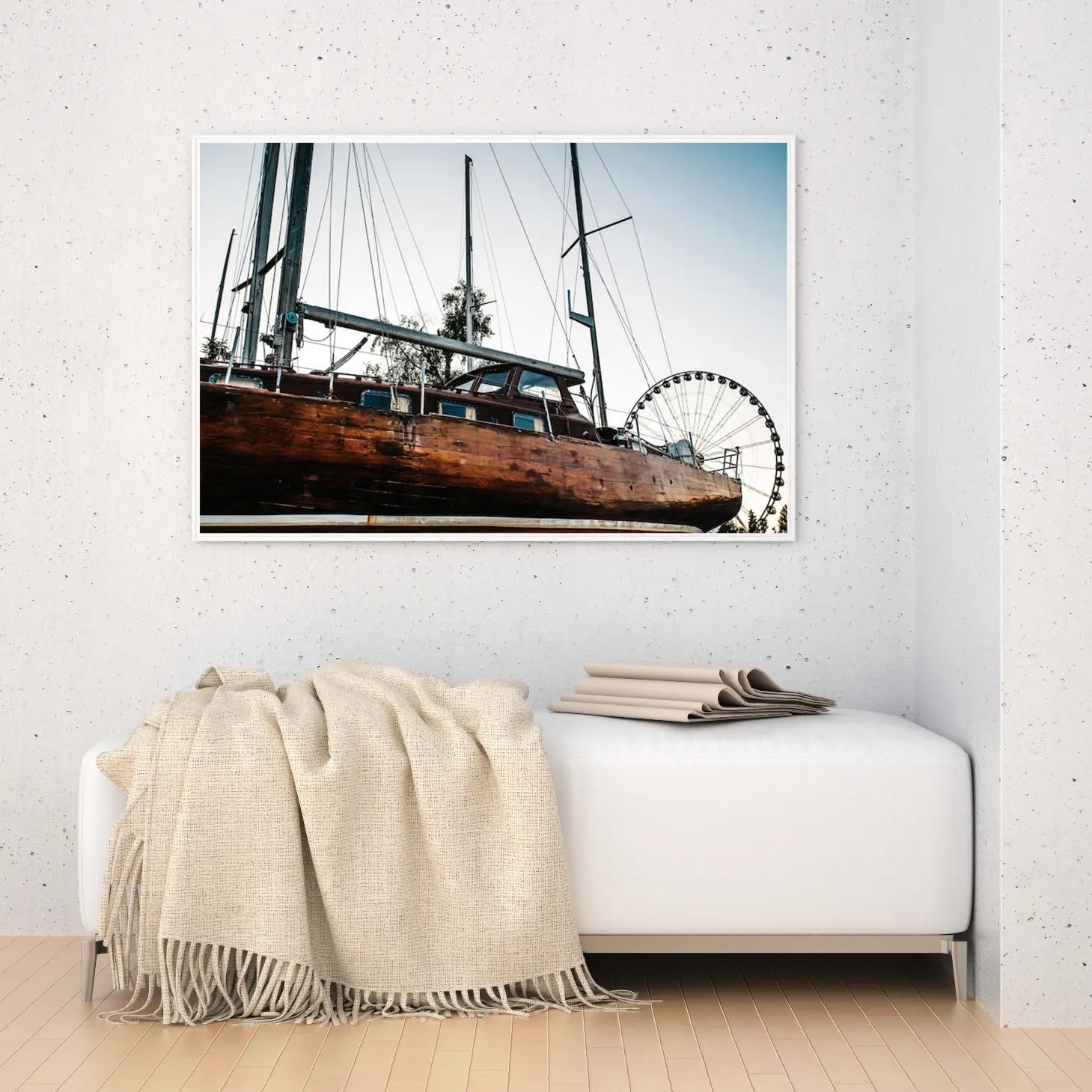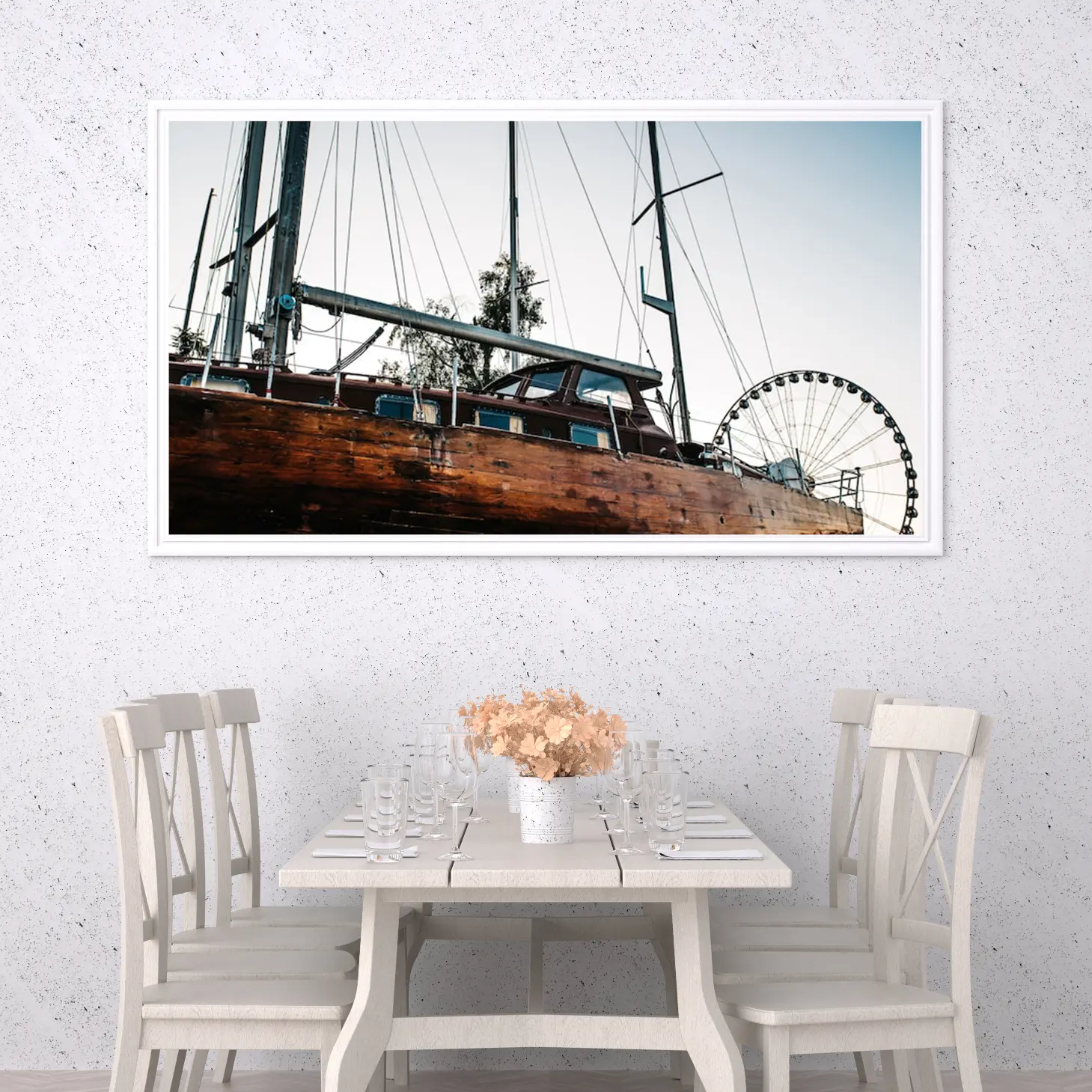 استمتع بجمال هذه اللوحة الفاخرة التي تجسد روح المغامرة والحنين إلى البحر، حيث تتناغم الألوان الدافئة مع تفاصيل السفينة الخشبية. تتوفر بأحجام متعددة وإطارات أنيقة، مما يجعلها خيارًا مثاليًا للتزيين أو كهدية تعبر عن الذوق الرفيع في المناسبات الخاصة. اجعل من كل زاوية في منزلك لوحة فنية تنبض بالحياة.