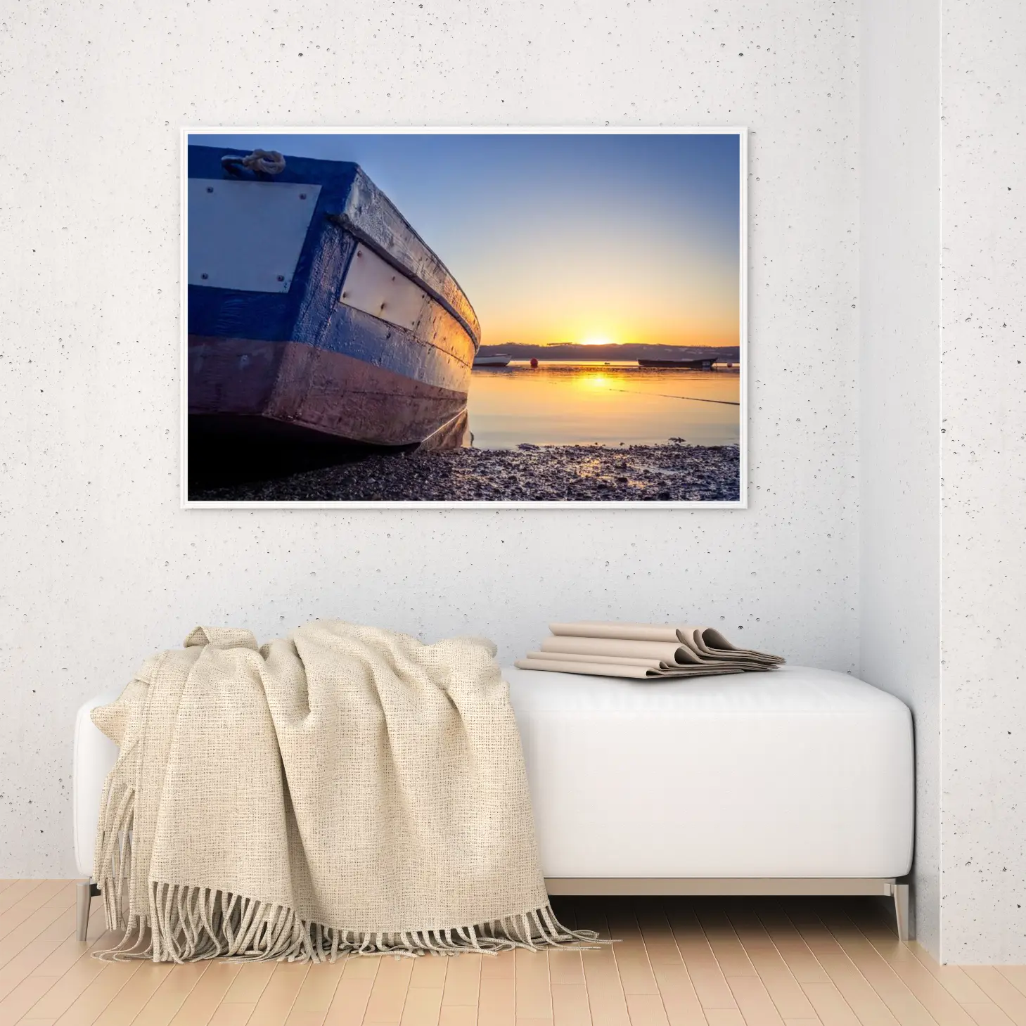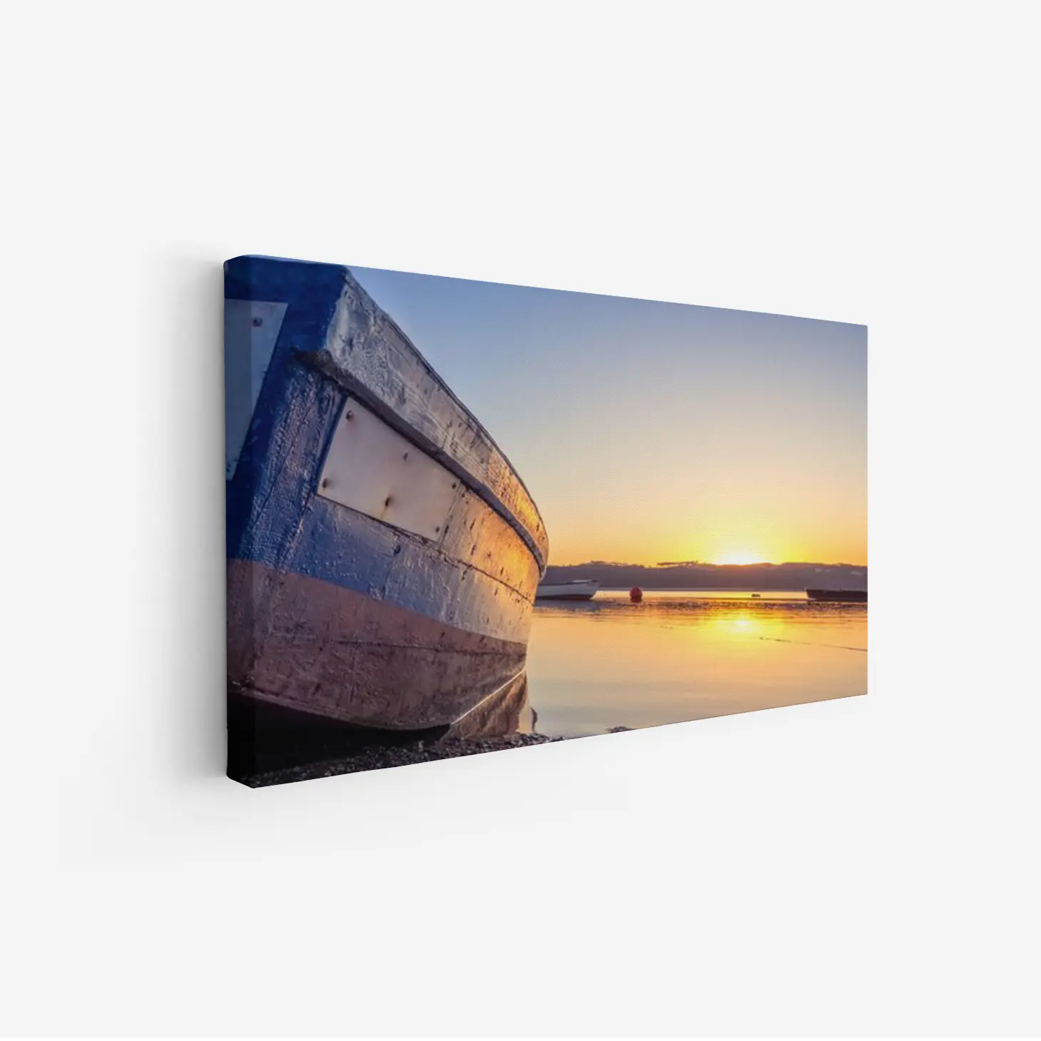 استمتع بجمال لوحة الكانفاس التي تلتقط لحظة ساحرة عند غروب الشمس، حيث تتناغم الألوان الدافئة مع تفاصيل القارب الخشبي، مما يضفي لمسة من الأناقة على أي مساحة. تتوفر اللوحة بمقاسات متعددة وإطارات متنوعة، مما يجعلها خيارًا مثاليًا لهدية تعبّر عن الذوق الرفيع في المناسبات الخاصة. اجعل من هذه التحفة الفنية لمسة فريدة في منزلك أو هدية مميزة لأحبائك.