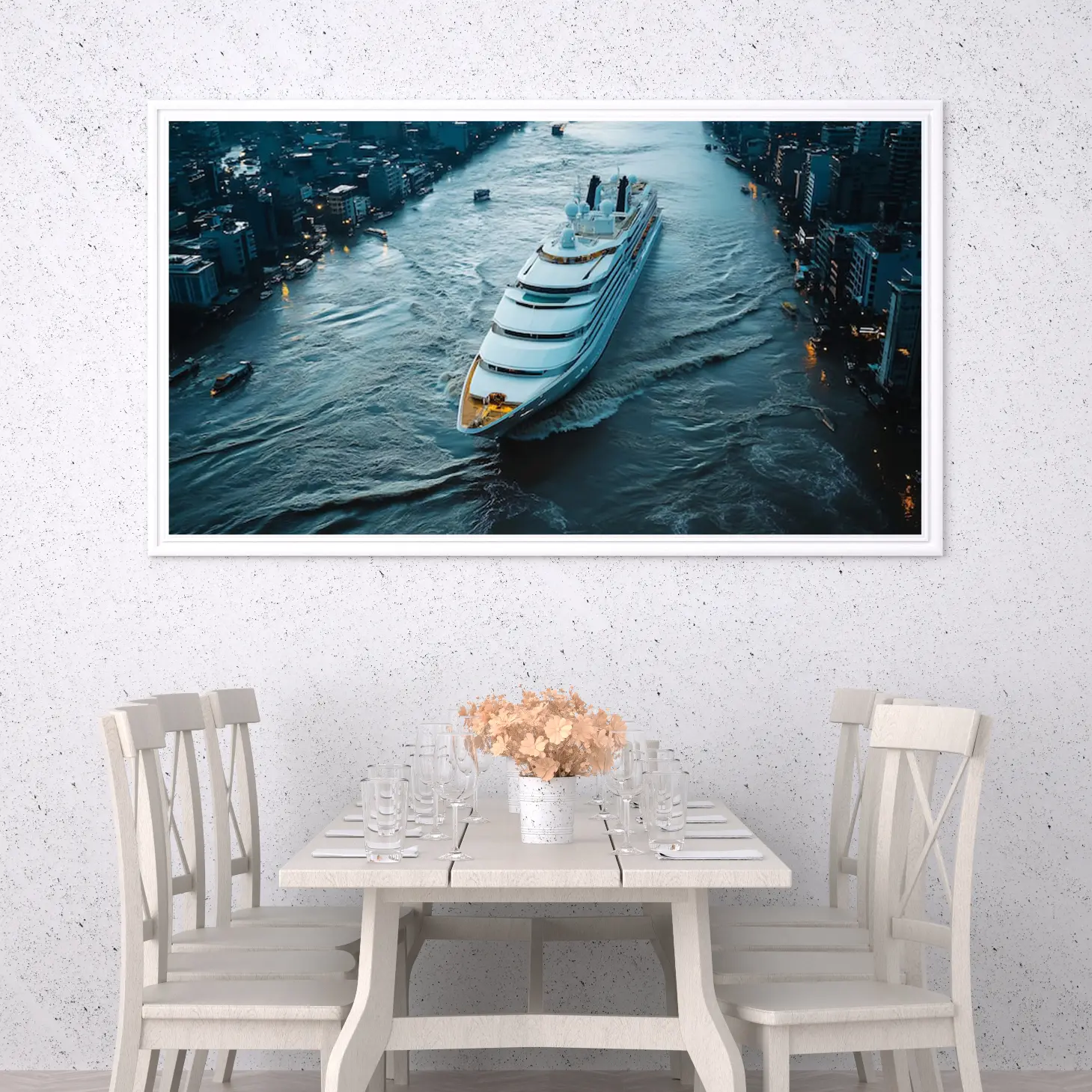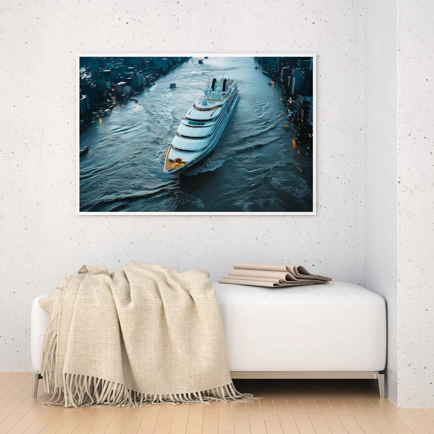 استمتع بجمال هذه اللوحة الفاخرة التي تلتقط لحظة ساحرة لليخت الفاخر وهو يبحر في مياه المدينة، مما يضفي لمسة من الأناقة والرفاهية على أي مساحة. تتوفر بأحجام متعددة وإطارات متنوعة، مما يجعلها خيارًا مثاليًا كهدايا تعبر عن الذوق الرفيع في المناسبات الخاصة. اجعل من هذه التحفة الفنية لمسة فريدة في منزلك أو مكتبك، وامنح نفسك أو من تحب تجربة بصرية لا تُنسى.
