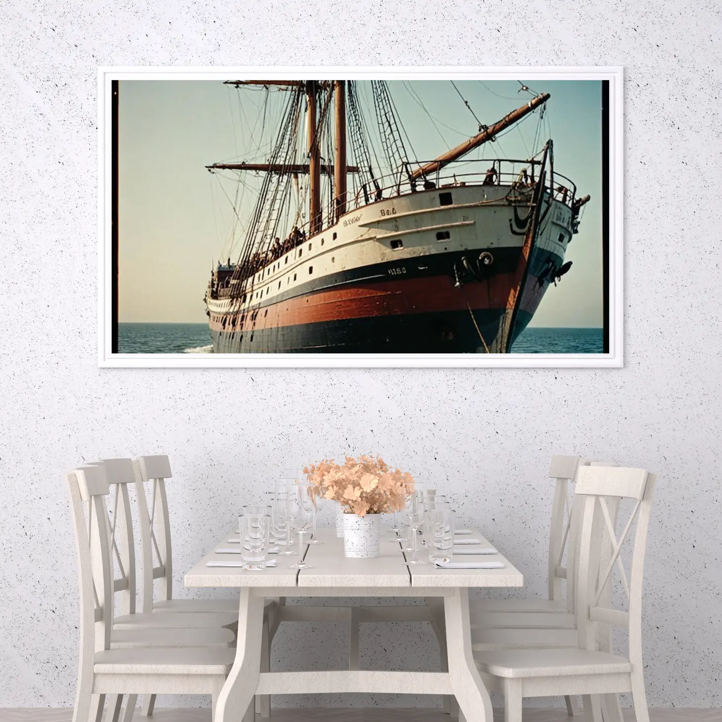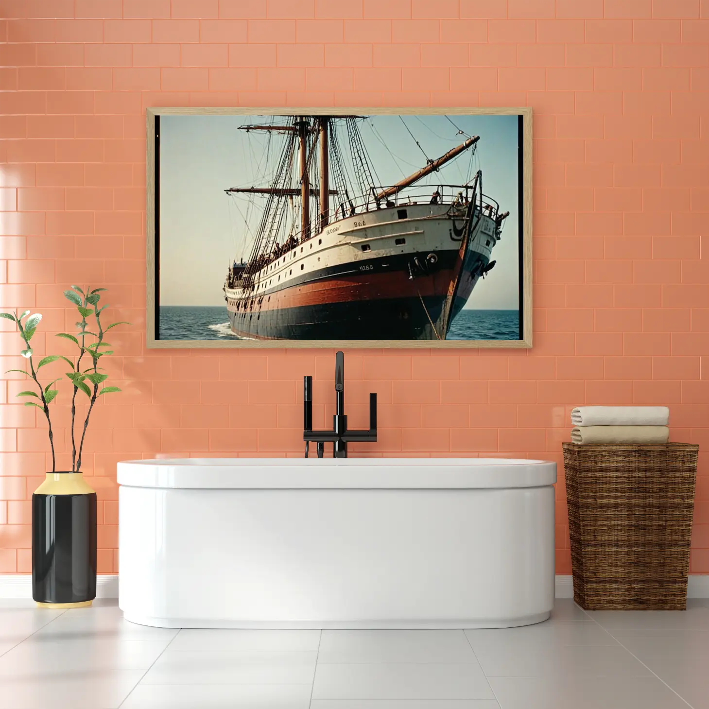 تجسد هذه اللوحة الفنية مشهدًا بحريًا رائعًا، حيث يبرز فيها سفينة شراعية عريقة تتألق بألوانها الدافئة وتفاصيلها الدقيقة. يخلق هذا العمل الفني أجواءً من الحنين إلى الماضي، مما يجعله خيارًا مثاليًا لإضفاء لمسة من الأصالة على أي مساحة. إن وجود هذه القطعة في منزلك أو مكتبك سيعزز من نمط الحياة العصري، ويجعل من المكان نقطة جذب للزوار، حيث ستثير فضولهم وتفتح أمامهم أبوابًا من الذكريات والتجارب البحرية.