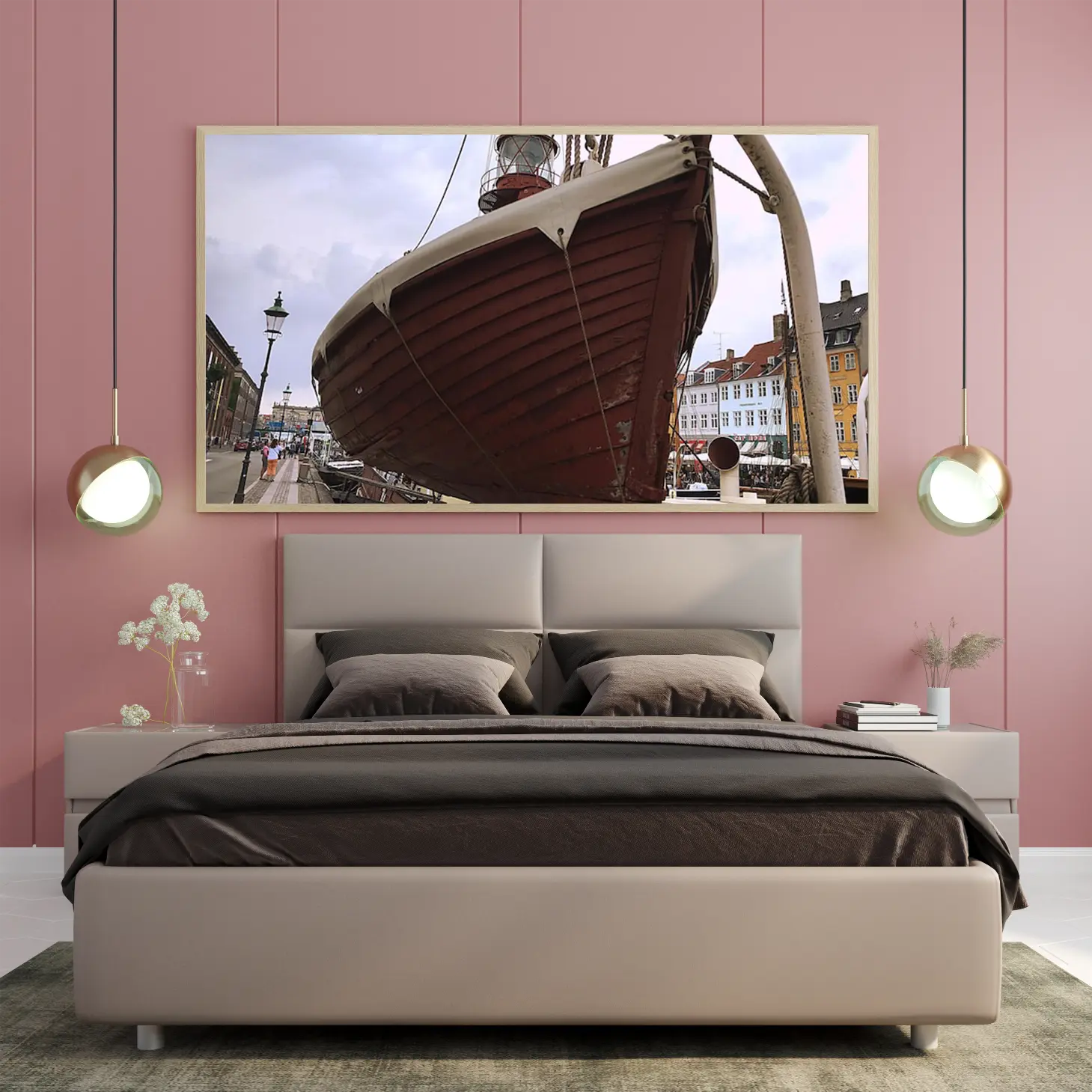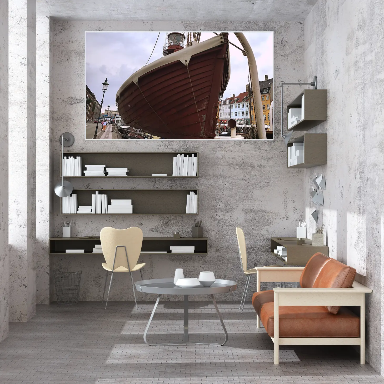 تجسد هذه اللوحة الفنية مشهدًا بحريًا يأسر الأنفاس، حيث تتجلى تفاصيل القارب بوضوح، مما يضفي إحساسًا بالهدوء والسكينة. الألوان الدافئة التي تميز القارب تتناغم مع الخلفية، مما يخلق توازنًا بصريًا ينعكس على أجواء المكان. هذه القطعة ليست مجرد ديكور جداري، بل هي استثمار جمالي يضفي لمسة من الأناقة على أي مساحة، مما يجعلها خيارًا مثاليًا لمن يسعى لإضفاء روح جديدة على منزله.